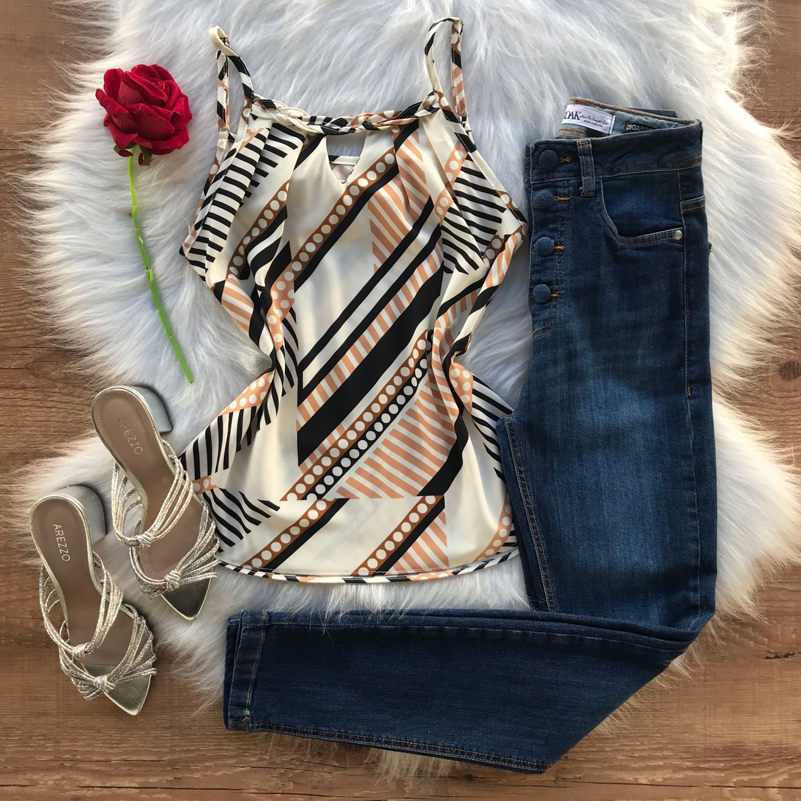 Como usar sua Regata Estampada Decote Trançado Nude:
