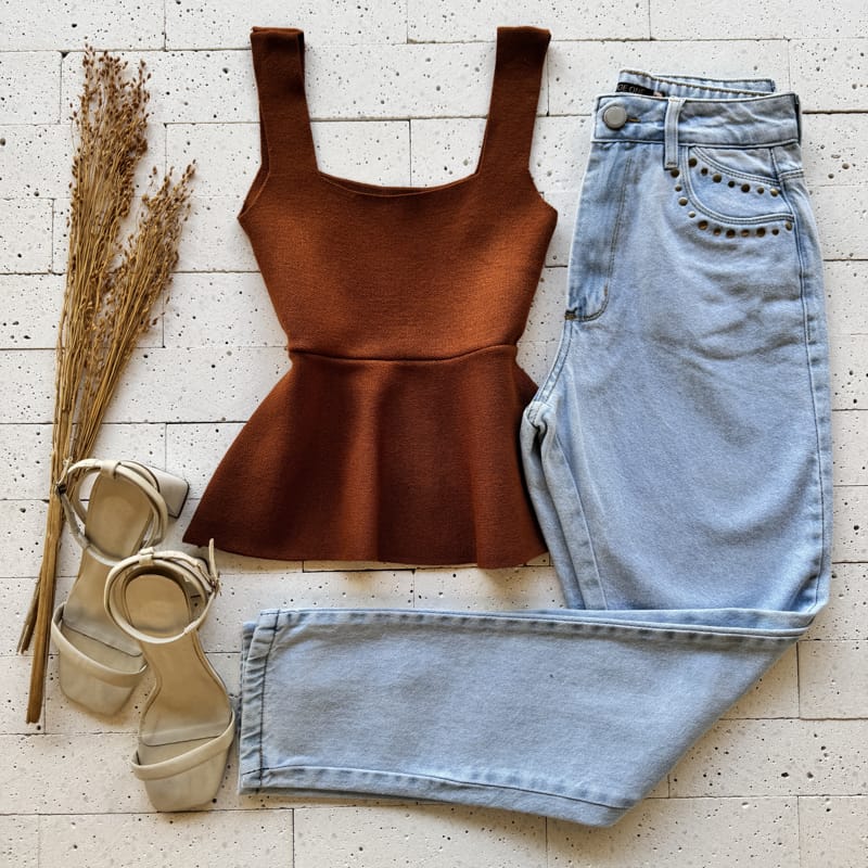 Garanta já sua REGATA MODAL PEPLUM BÁSIC TELHA com Envio Rápido e até 12x sem juros no cartão!