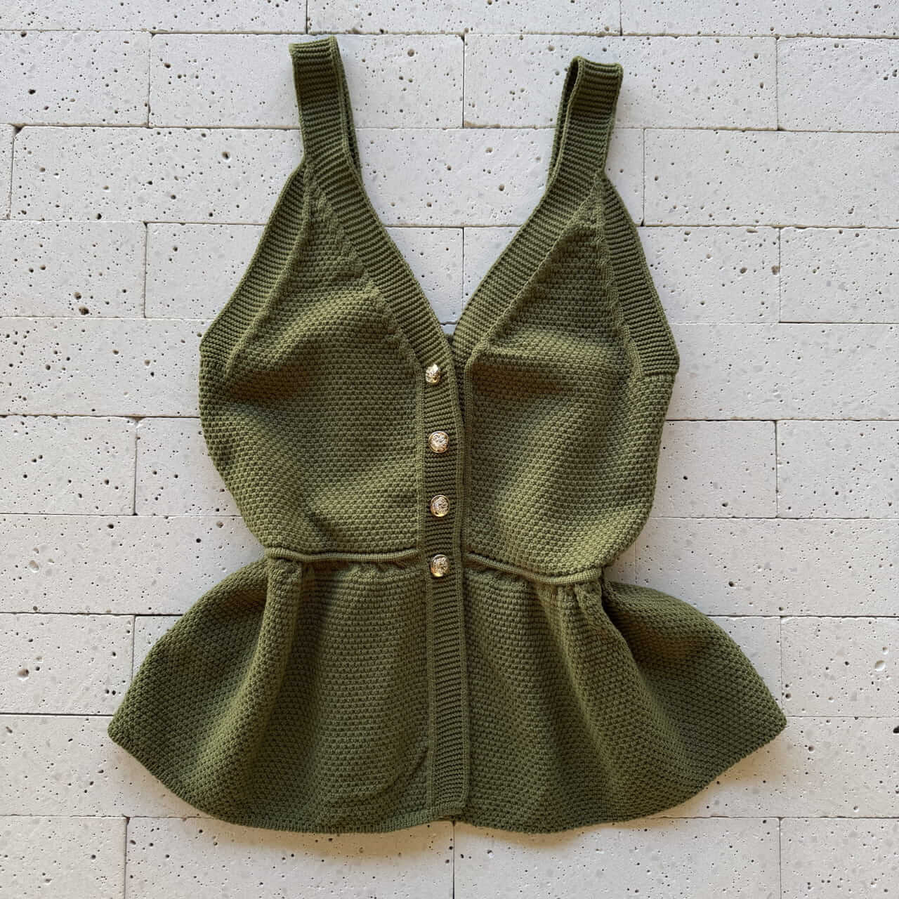 REGATA MODAL PEPLUM DETALHE BOTÕES VERDE OLIVA – Tricô que Valoriza a Cintura