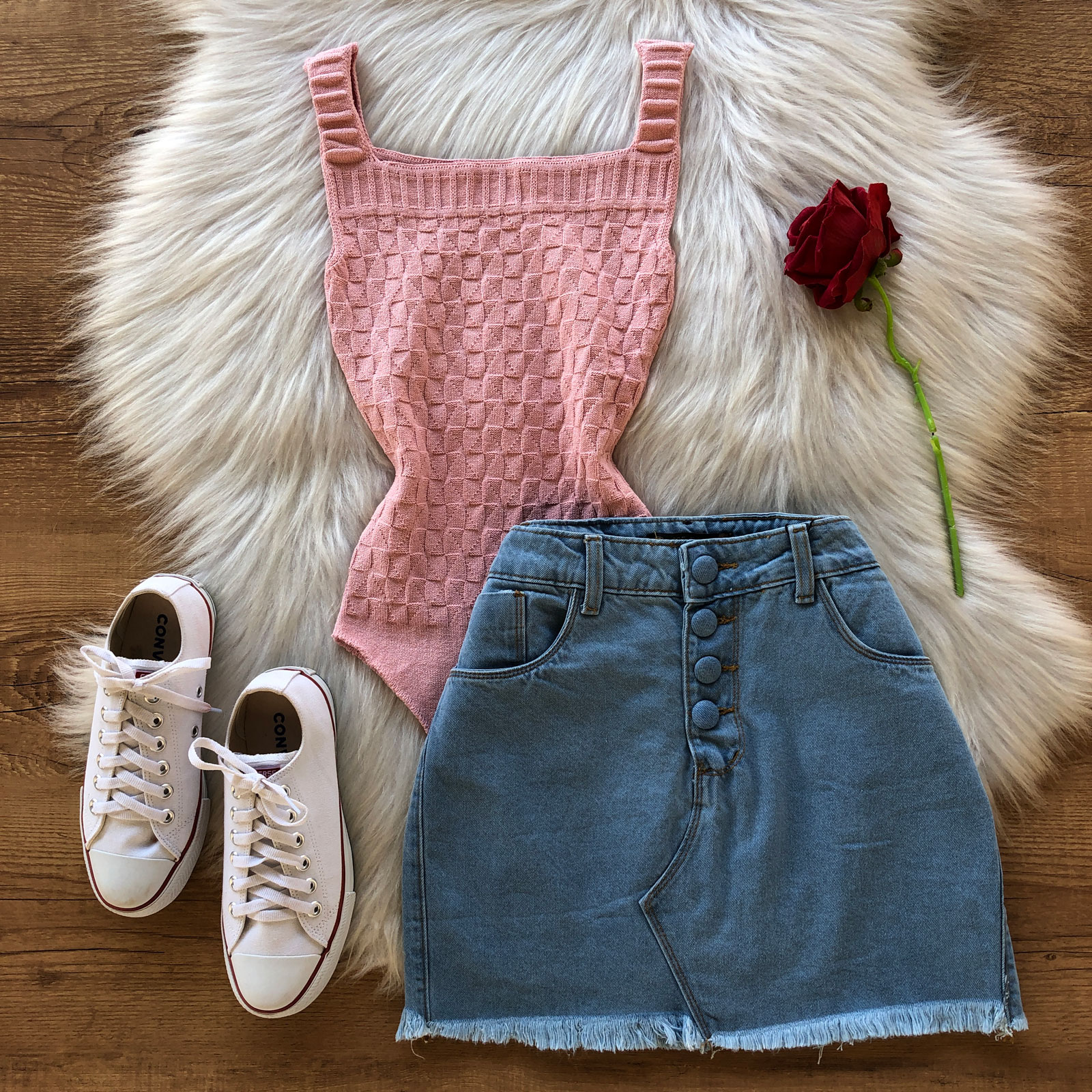 Uma das peças mais clássicas da moda feminina é a boa e atemporal saia jeans. Elas nunca saem de moda e são super românticas, ótimas para quem ama um look cheio de feminilidade. Uma boa sugestão para acompanhar a saia jeans é apostar nos bodys modais. Eles modelam o corpo e criam uma silhueta linda!