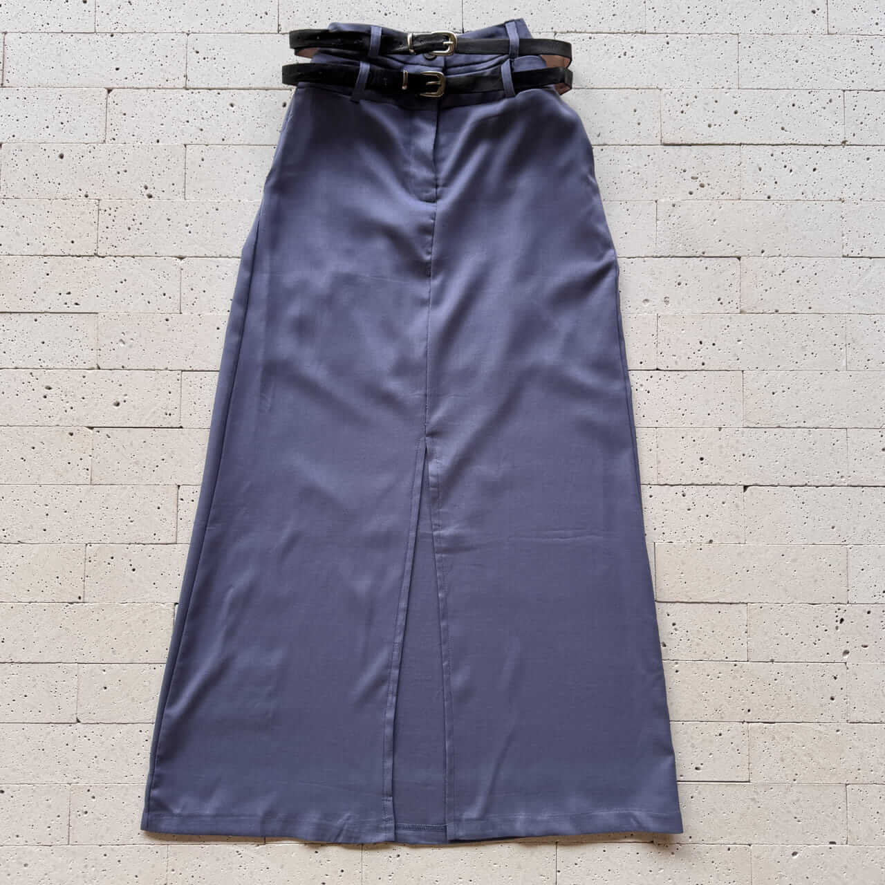 SAIA MIDI COM FENDA E CINTO DUPLO MARINHO
