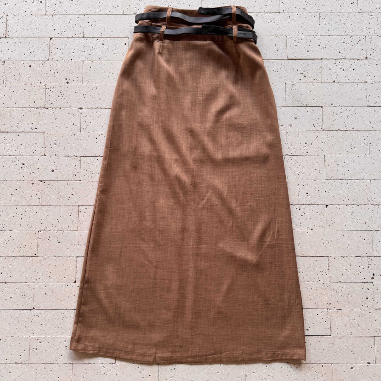 SAIA MIDI COM FENDA E CINTO DUPLO NUDE