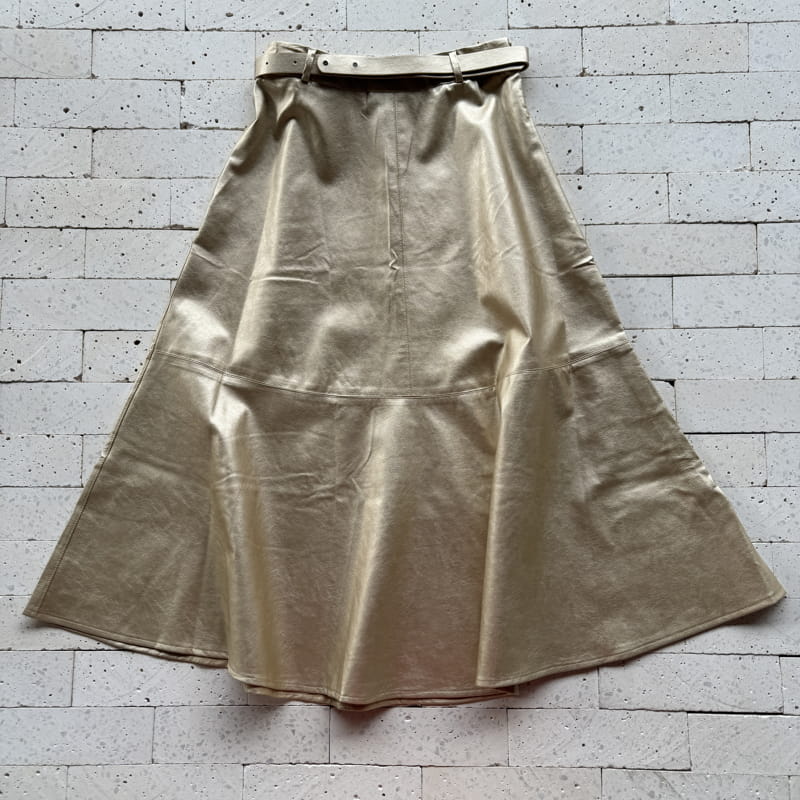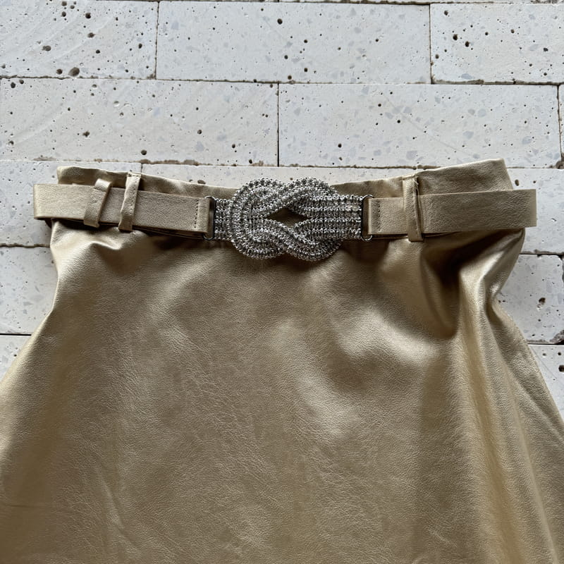 SAIA MIDI COURO FAKE COM CINTO PREMIUM DOURADA