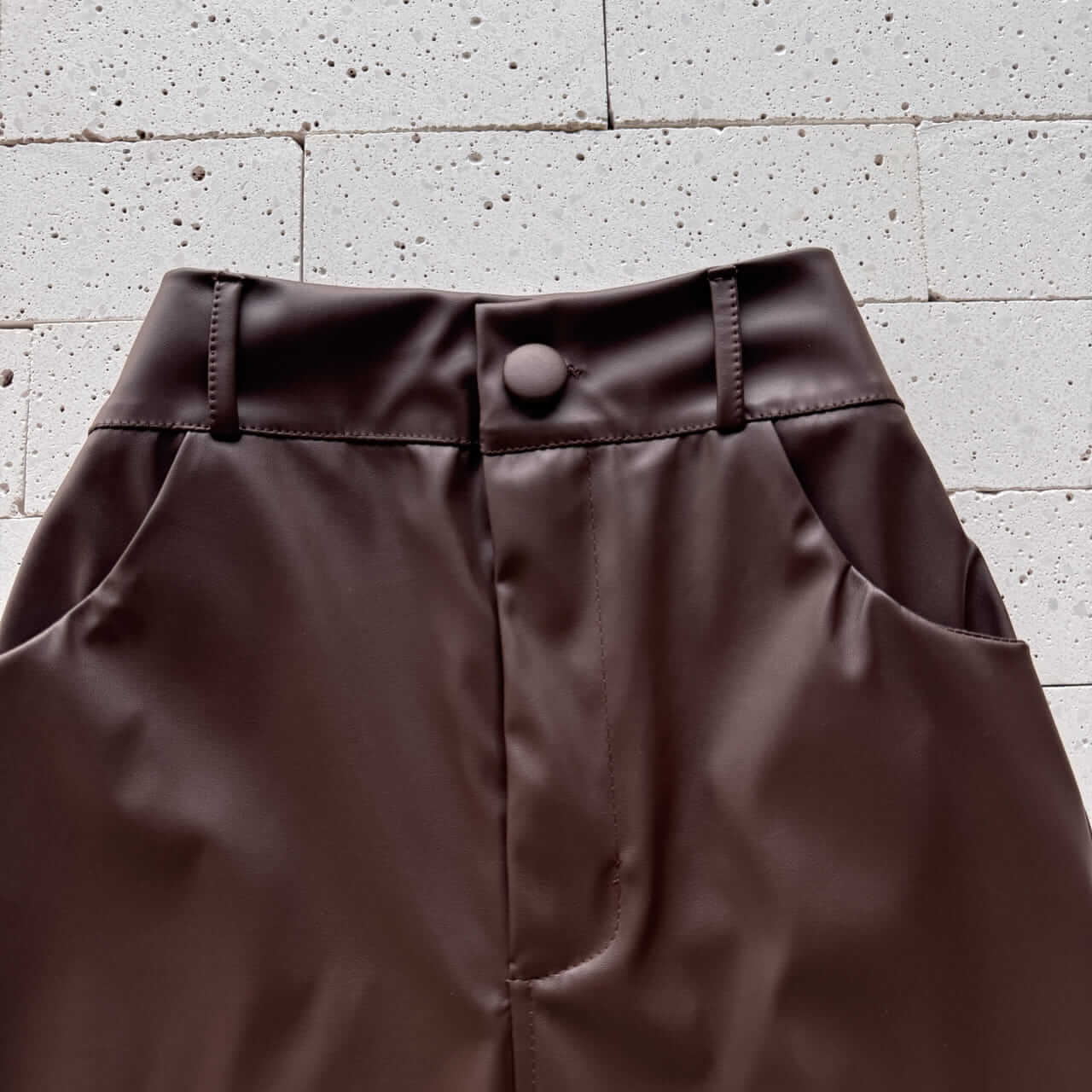 A saia midi em couro sintético na cor café é uma peça marcante e sofisticada, perfeita para elevar produções do dia a dia ou composições mais elaboradas. Com modelagem reta que alonga a silhueta, ela possui cós alto estruturado, fechamento frontal com botão encapado e zíper, além de bolsos funcionais que adicionam praticidade sem abrir mão do estilo. A fenda frontal traz modernidade ao visual e facilita os movimentos, enquanto o acabamento levemente acetinado destaca ainda mais a elegância da peça.