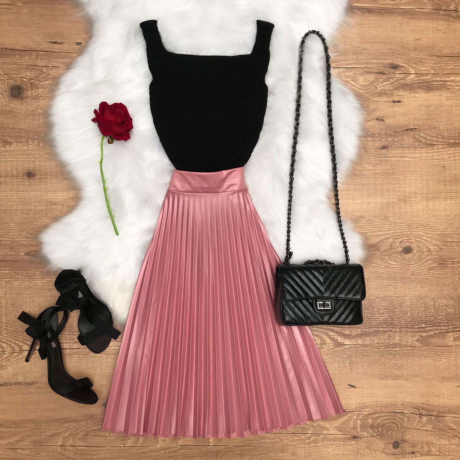 Como usar e como cuidar de sua Saia Midi Plissada Tecido Gloss Rosê: