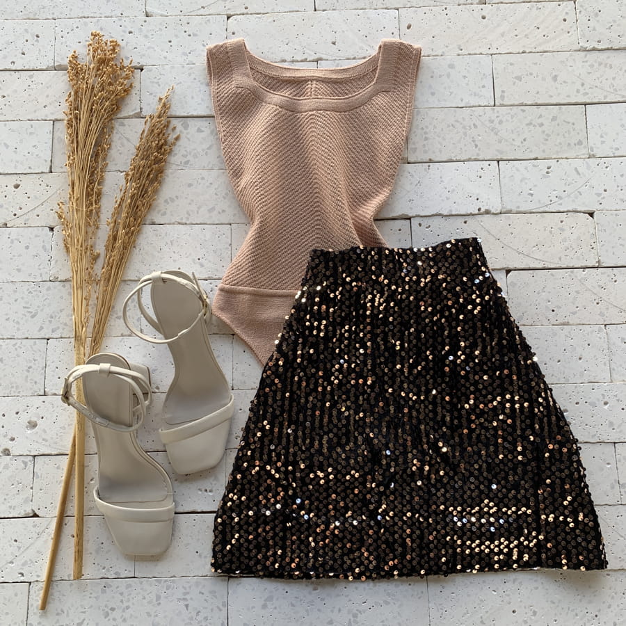 A saia com paete é indispensável a mulheres que adoram looks criativos e modernos! É o tipo de peça que combina com diversas composições e pode ter diferentes finalizações a depender da sua combinação. Com certeza é um modelo que alavanca qualquer produção e pode ser utilizado em ocasiões em que se pede um dress code mais elaborado. Aposte em regatas ou body modal, scarpins, bolsa boxy e acessórios minimalistas que dão maior destaque à saia. Arrase nos looks e aposte sem medo de errar!