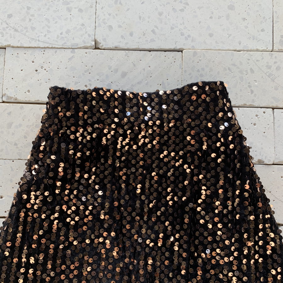 A Saia Paetê Festa Marrom é a mais nova tendência e promete ser um grande sucesso! O modelo possui confecção em aplicação de paetê e base em malha poliester, oferecendo toque agradável e caimento justo. O tecido se alinha a curvatura da silhueta e proporciona uma estética super moderna que dá o ponto de luz às suas produções.