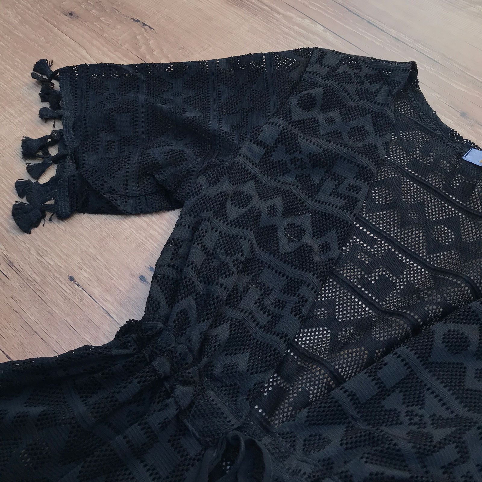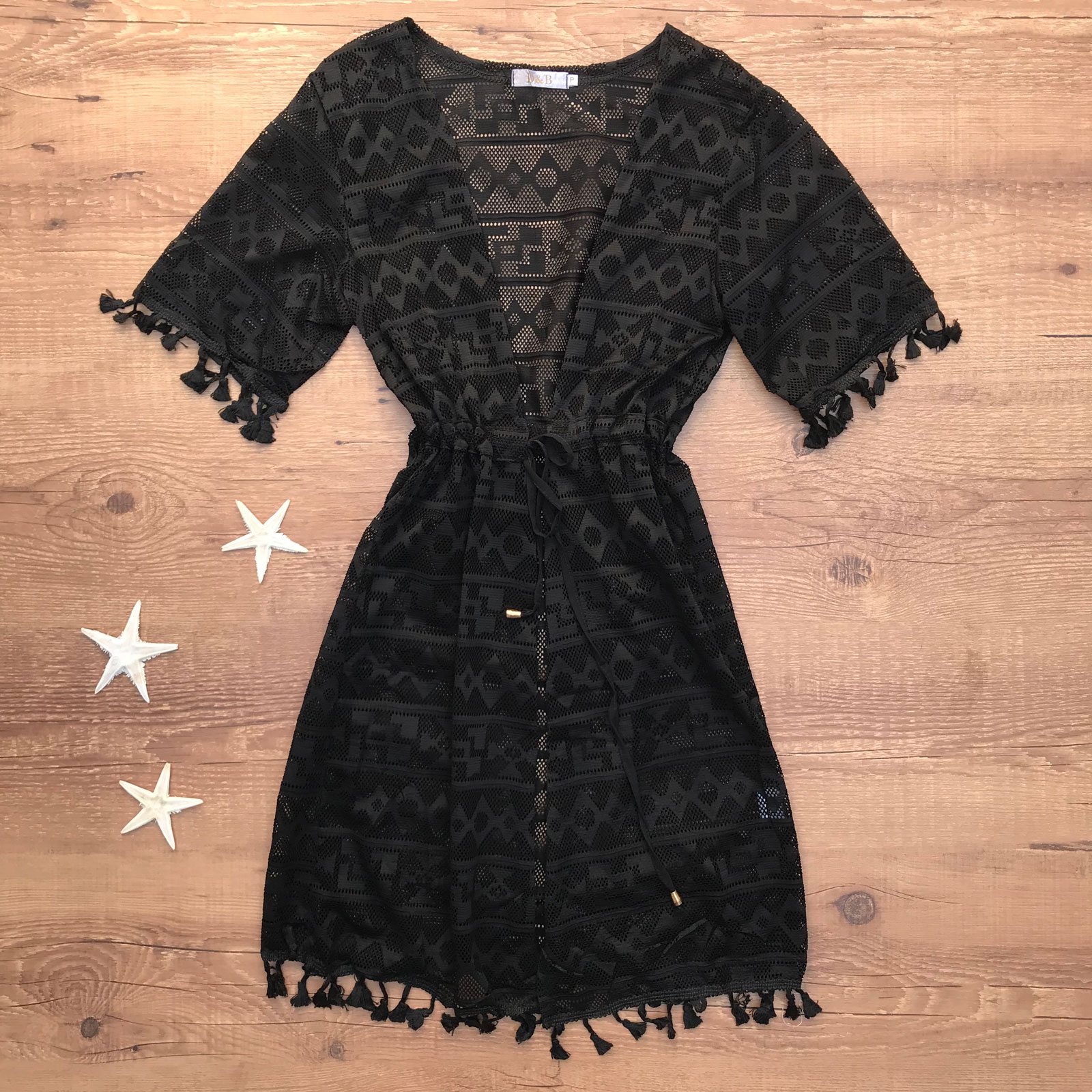 SAÍDA DE PRAIA RENDA COM TASSEL PRETA