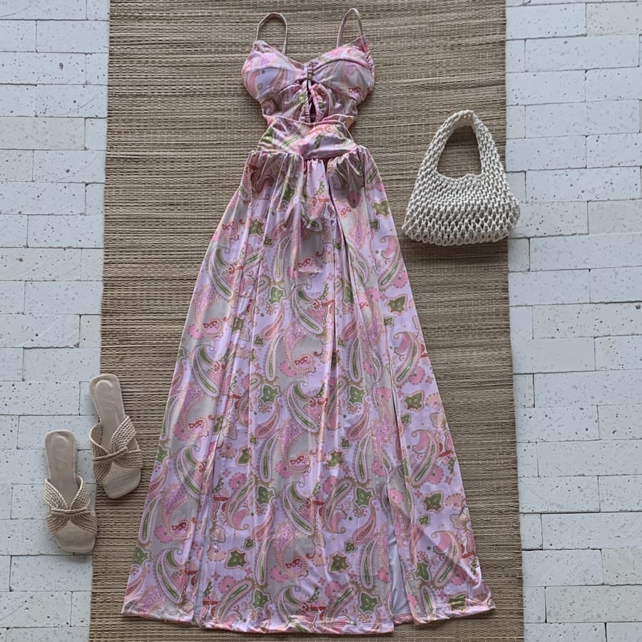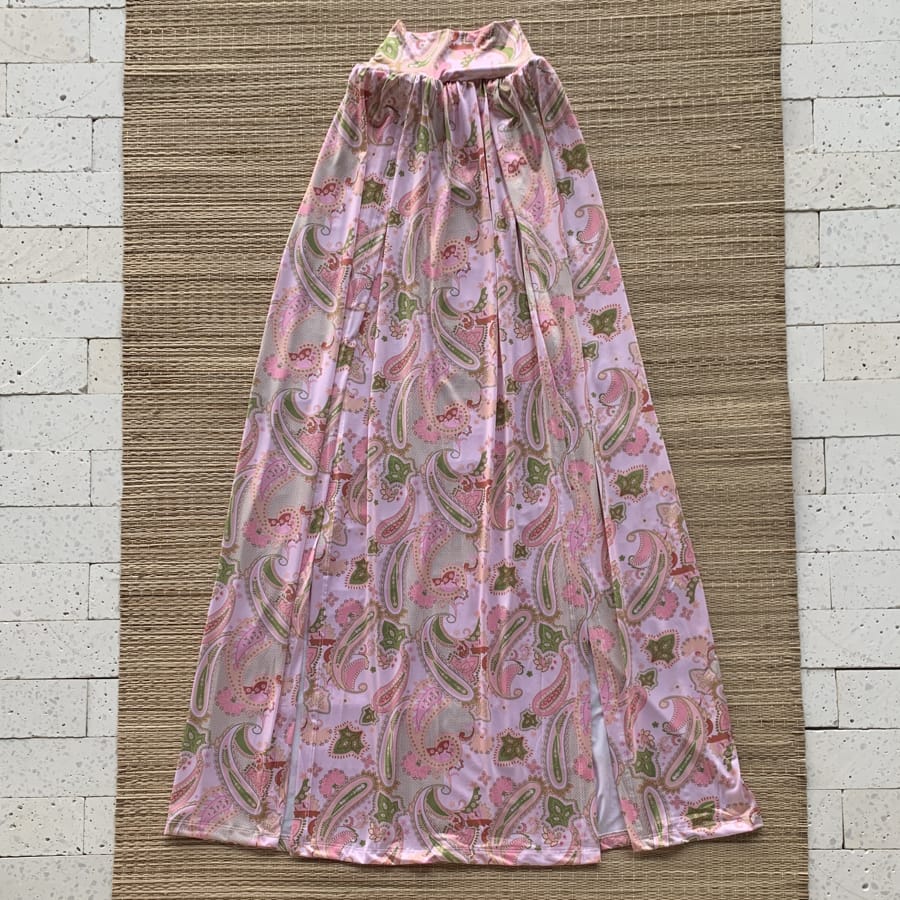 Saída de Praia Saia Longa – Estampa Rosa Terracota e Verde