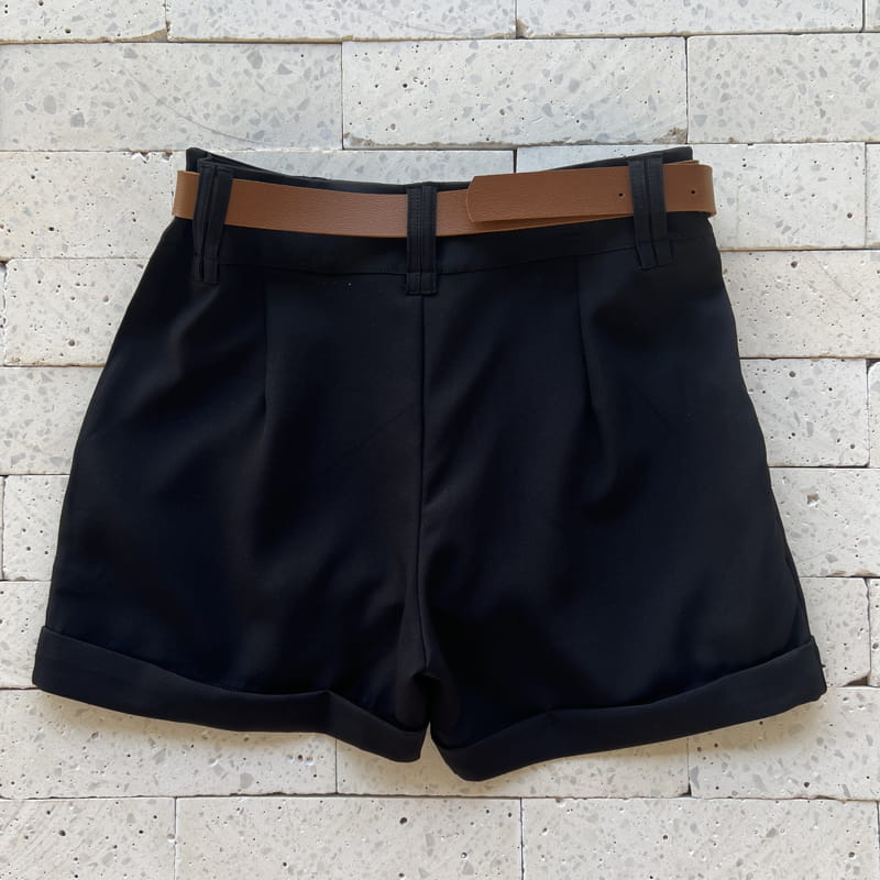 SHORT ALFAIATARIA COM CINTO DUPLO E BARRA DOBRADA PRETO