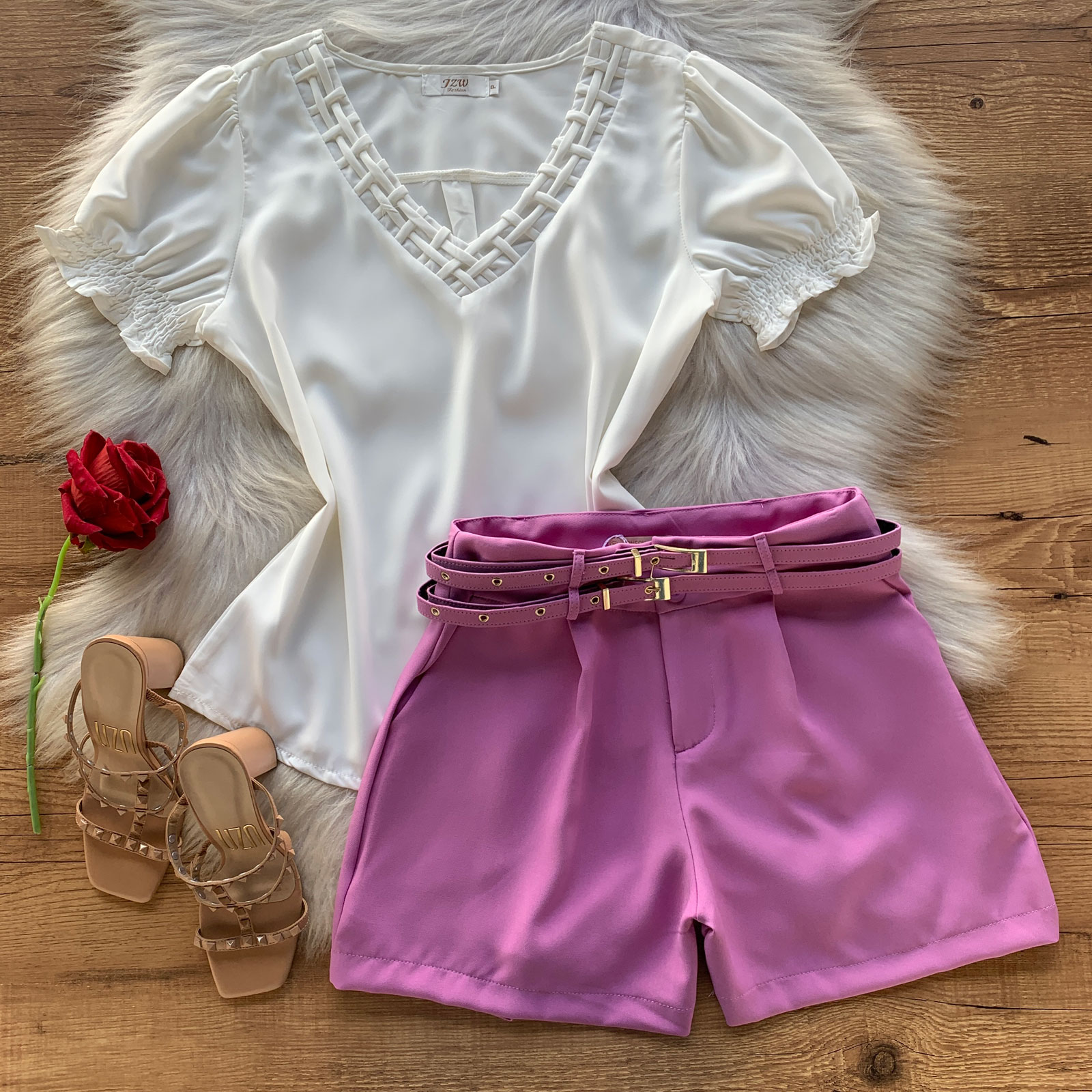 Como usar seu Short Alfaiataria Liso Com Cinto Duplo Lavanda