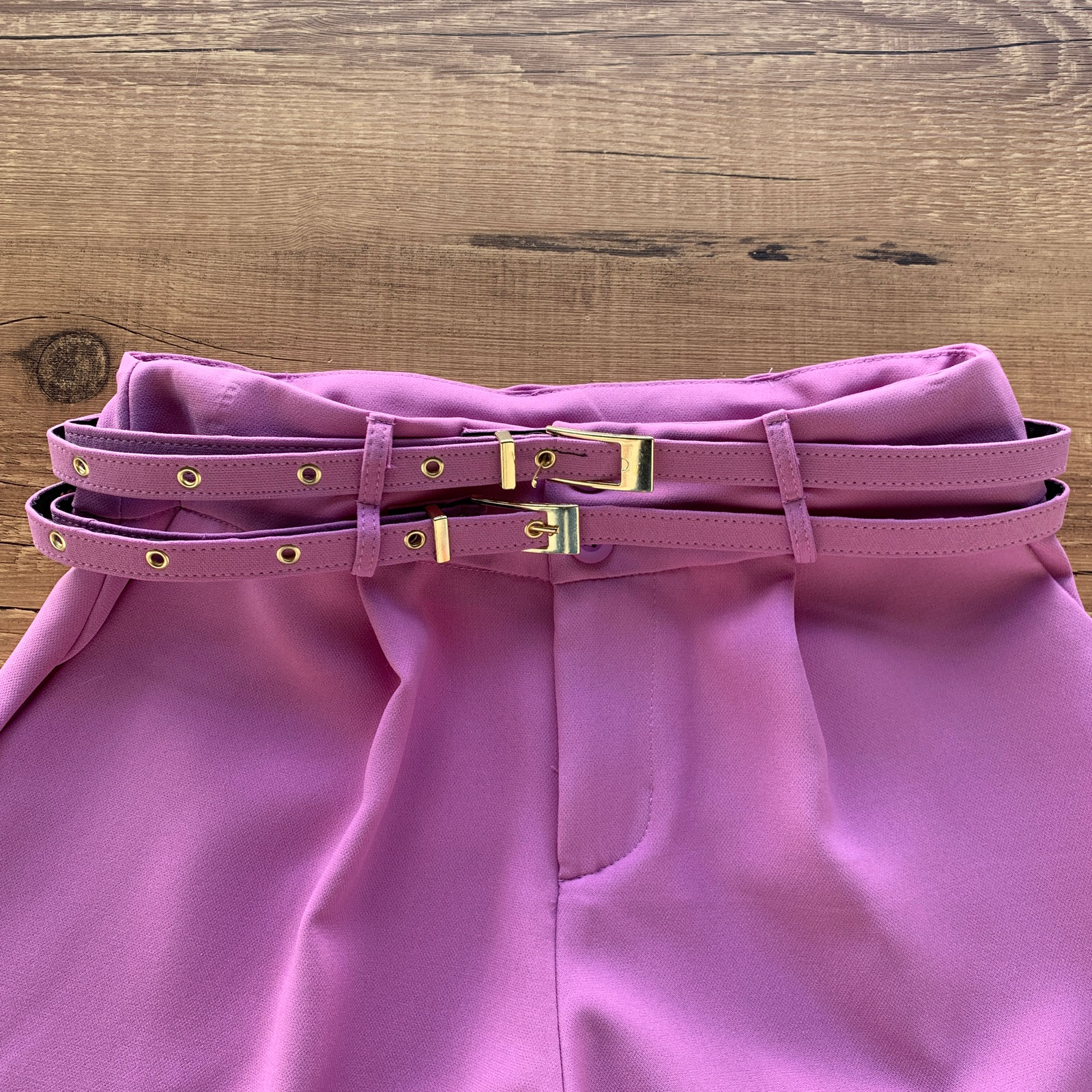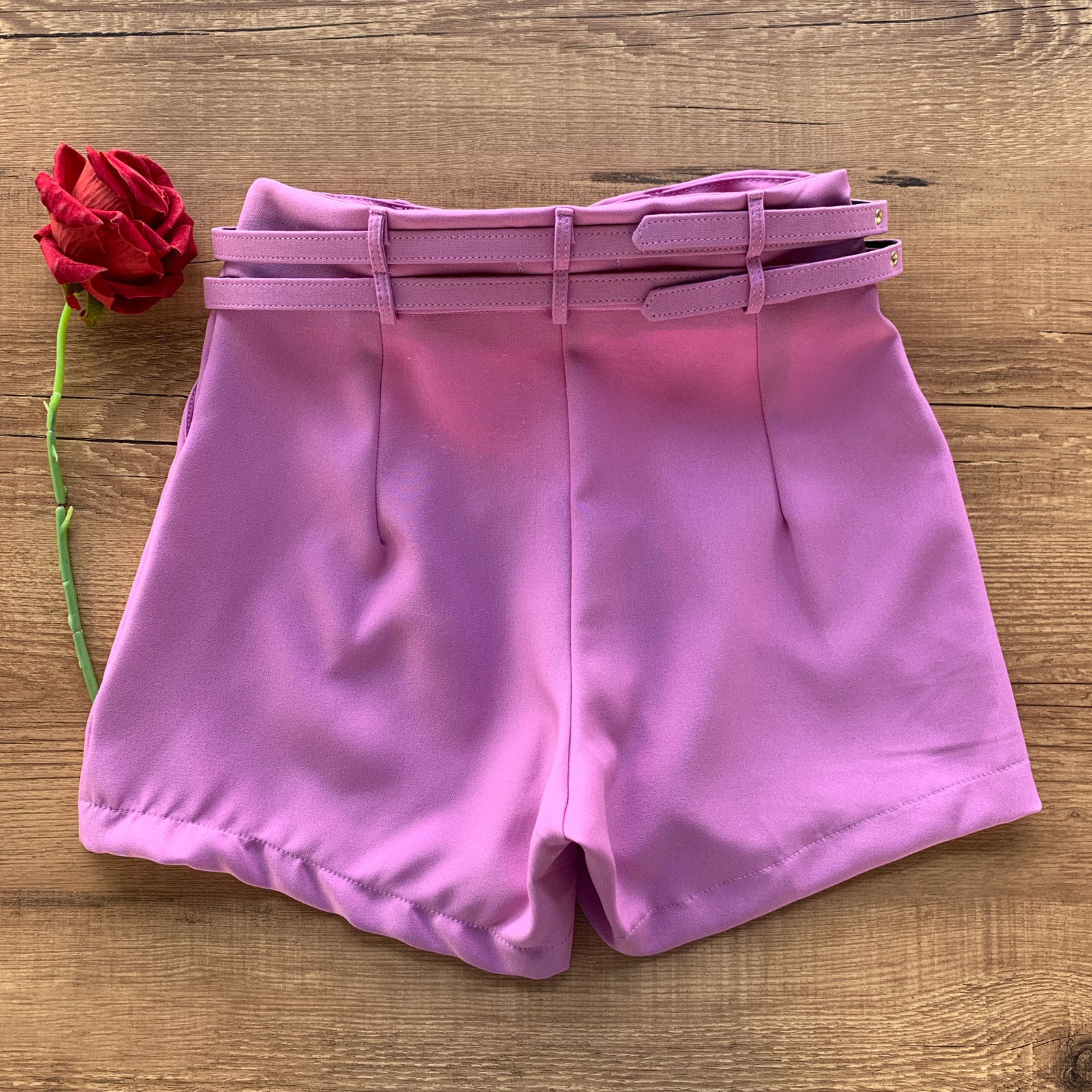 SHORT ALFAIATARIA LISO COM CINTO DUPLO LAVANDA