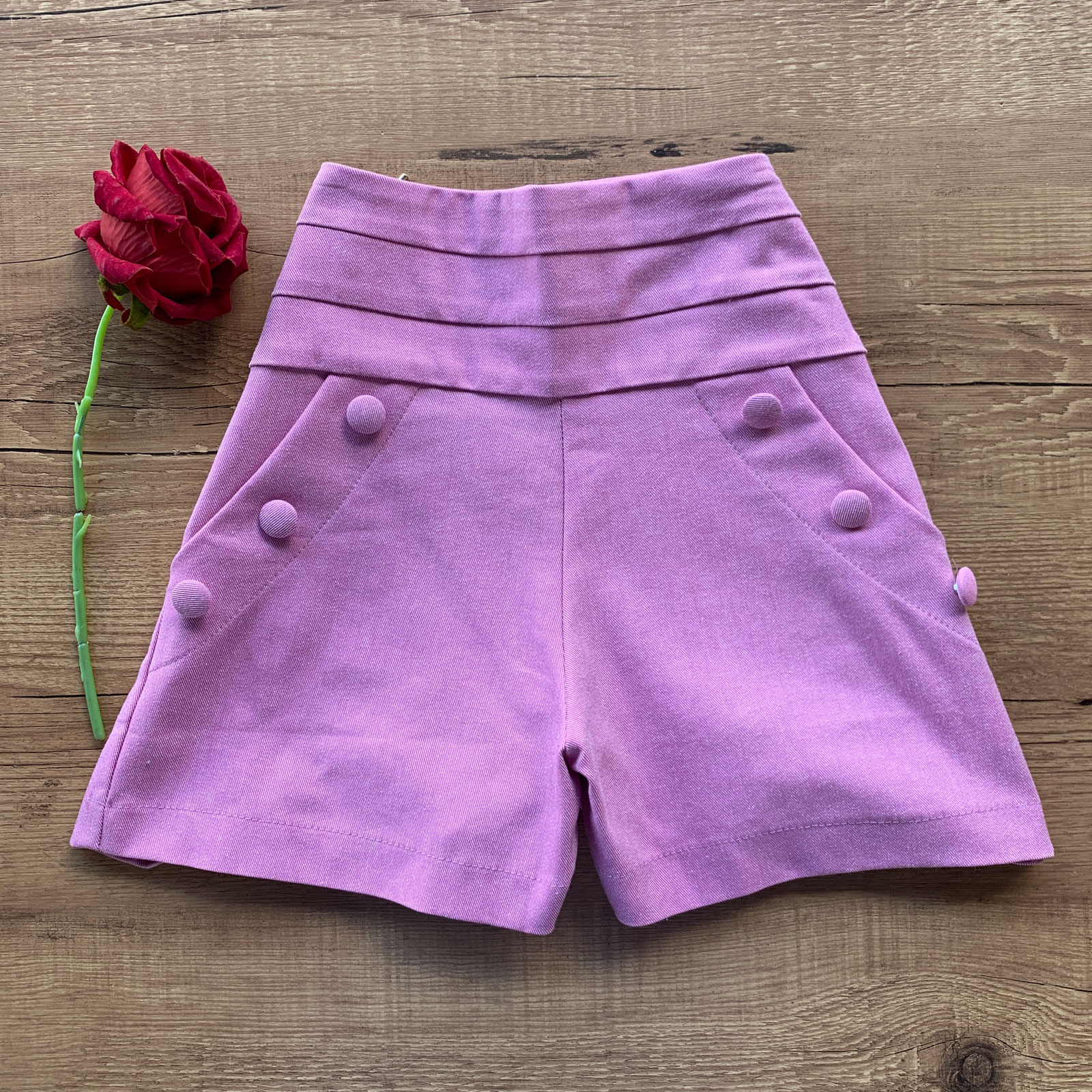 SHORT CÓS ALTO COM BOTÕES NO BOLSO ROSA