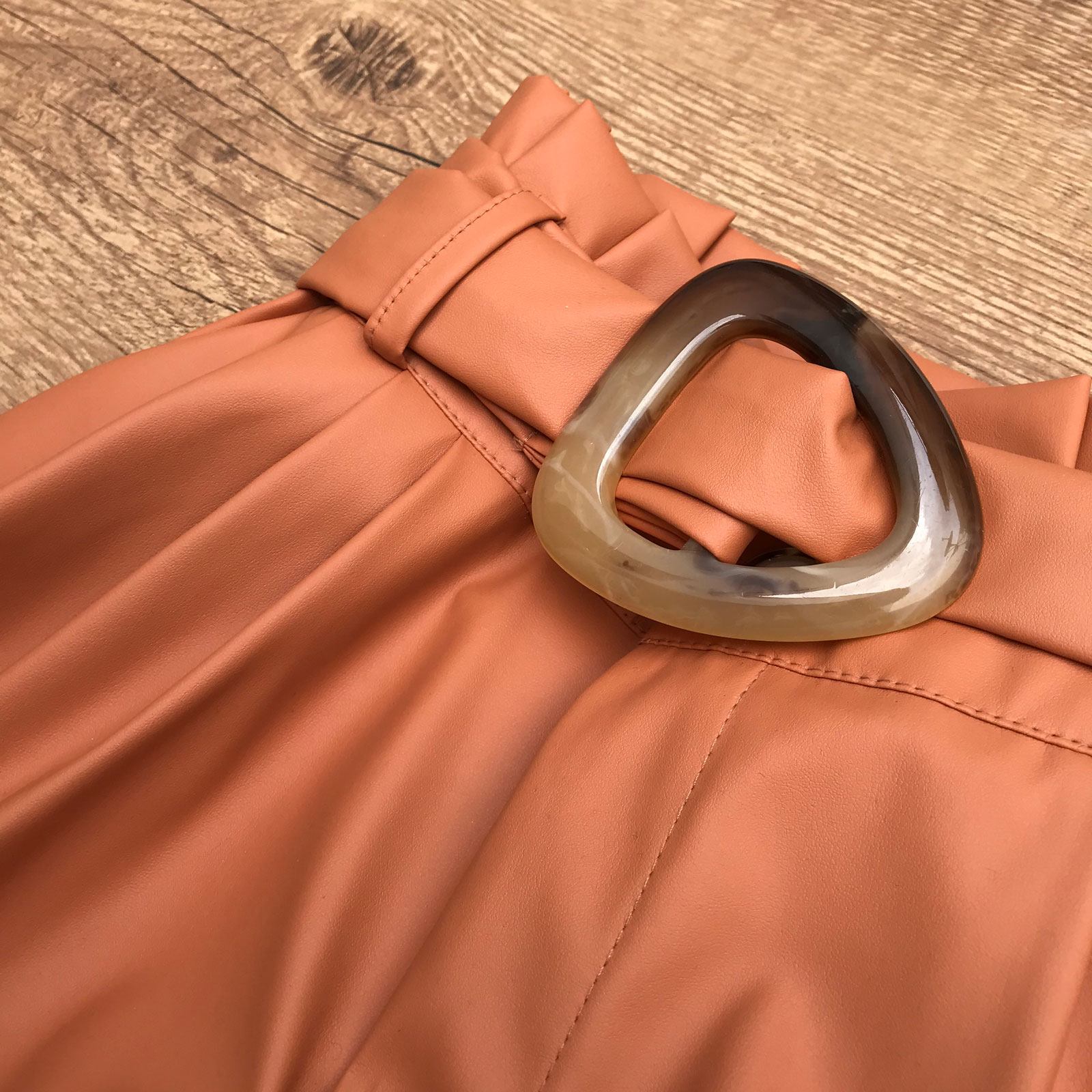 SHORT COURO FAKE COM CINTO CARAMELO