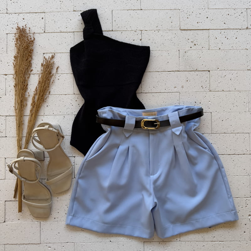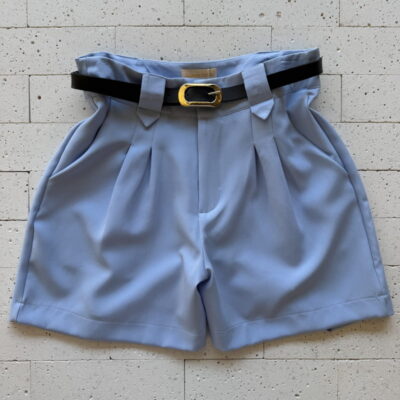 SHORT DETALHE PASSANTE LARGO E CINTO AZUL – Sofisticação e Estilo