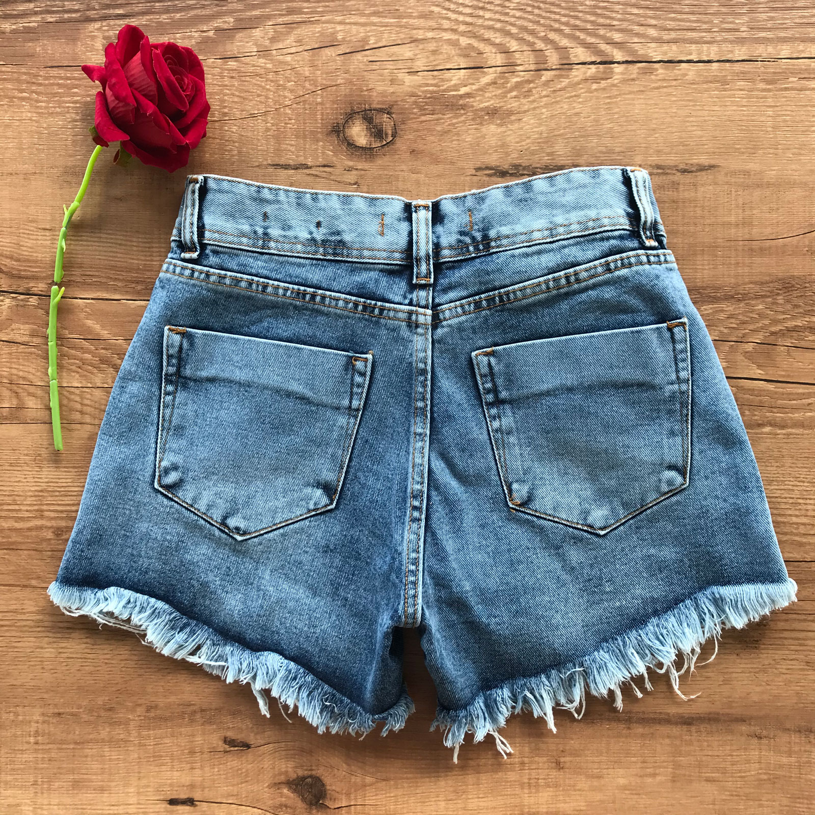 O Short Jeans Hot Pants Rasgadinho é a aposta certa para o verão! Produzido em jeans de primeira qualidade, a peça possui uma modelagem impecável, no modelo hot pants. O fechamento se dá por meio de botão e zíper frontais. Possui bolsos funcionais tanto na parte da frente quanto de trás. Conta com passantes. A lavagem é clara e o short possui detalhes desfiados, no estilo destroyed. A barra também é toda desfiada no mesmo estilo, deixando a peça super moderna.