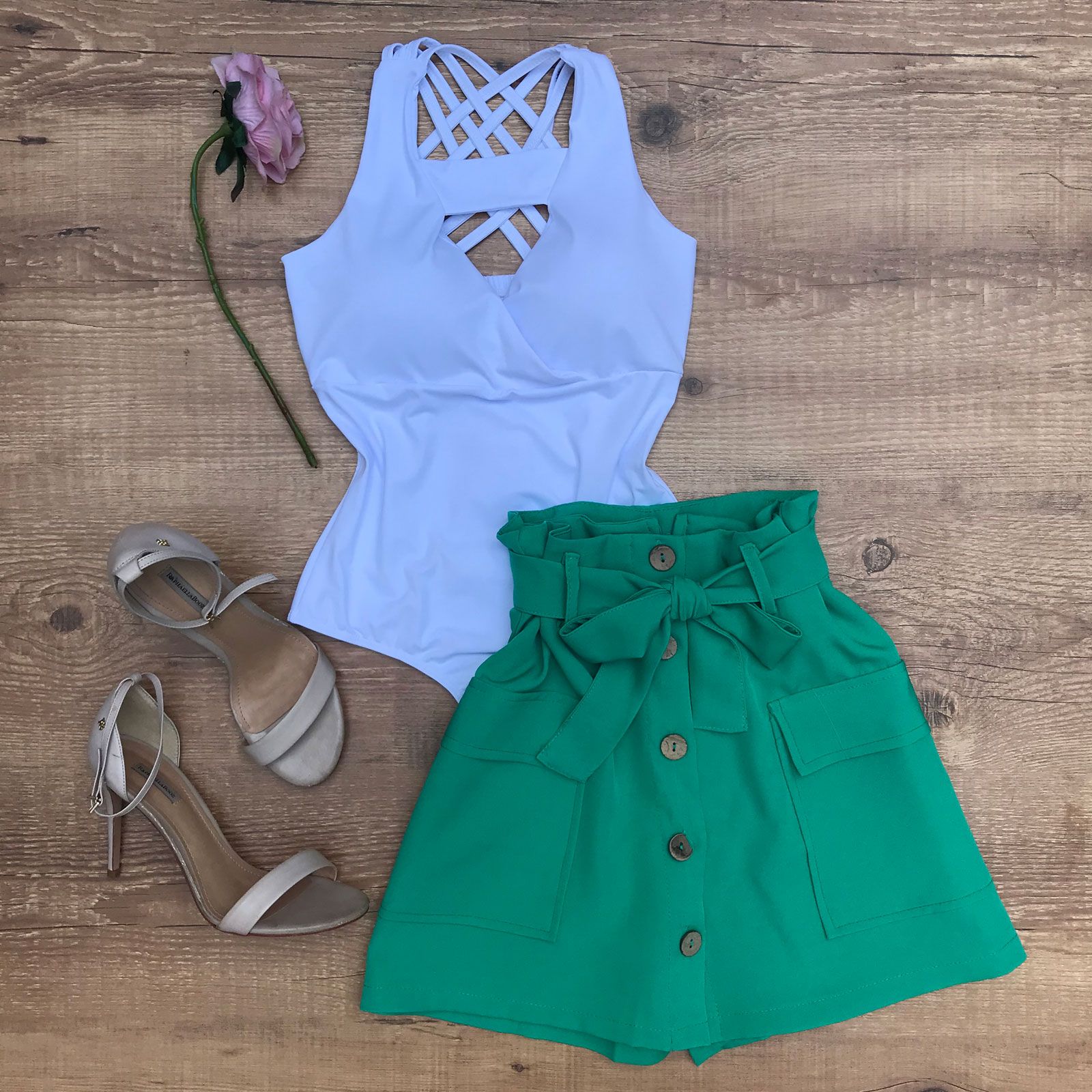 SHORT SAIA BOTÕES COM CINTO AMARRAÇÃO VERDE