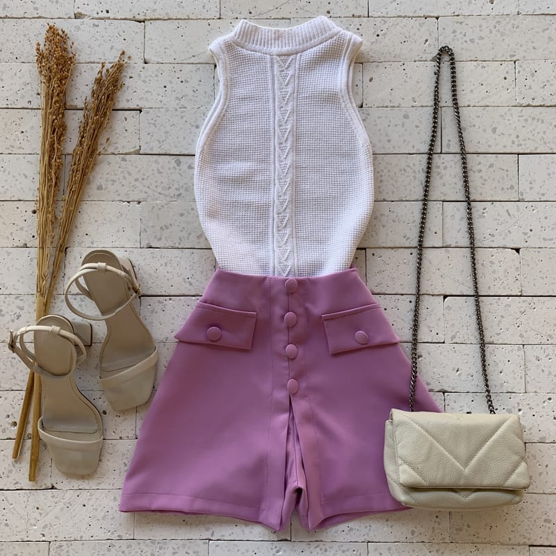 Como usar seu Short Saia Botões Encapados e Bolsinho Fake Lavanda