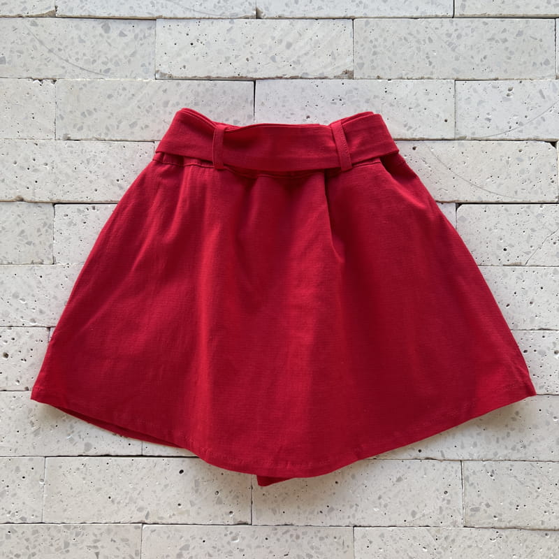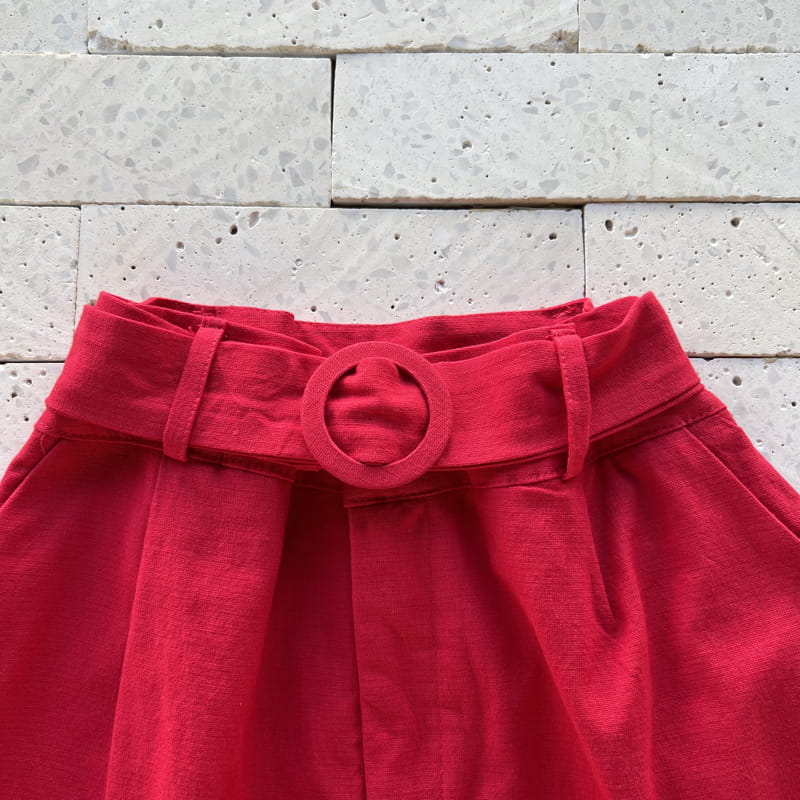 SHORT SAIA LINHO COM CINTO FIVELA ENCAPADA VERMELHO