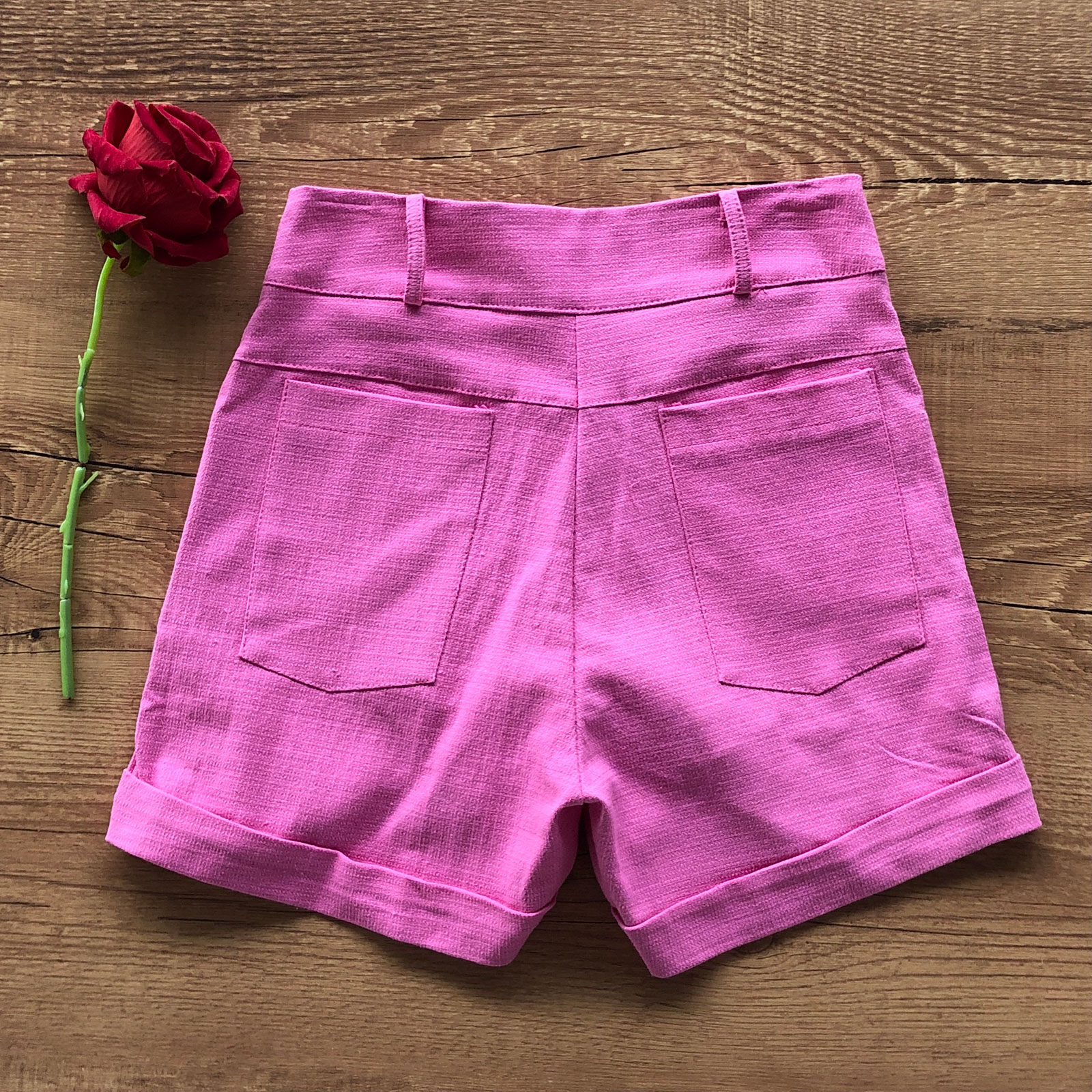 SHORT TECIDO TRABALHADO BARRA DOBRADA ROSA
