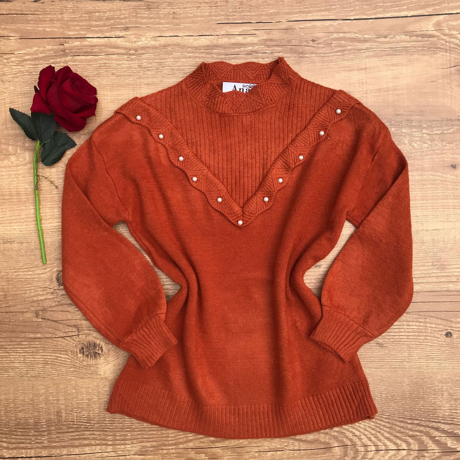 SUÉTER MODAL COM PÉROLAS TERRACOTA