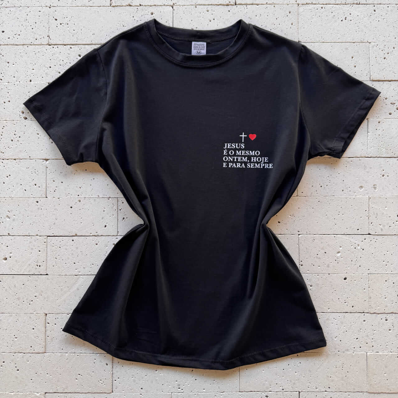 A T-Shirt Algodão Estampa Jesus Preta une estilo minimalista com uma mensagem cheia de significado. Confeccionada em algodão macio, essa peça oferece conforto absoluto para o dia a dia, enquanto a estampa discreta frontal com frase e detalhe de cruz e coração traz um toque moderno e inspirador. Sua modelagem básica com caimento soltinho garante versatilidade para diversas ocasiões.