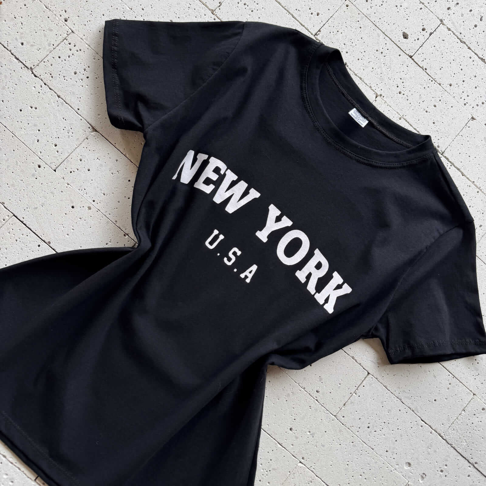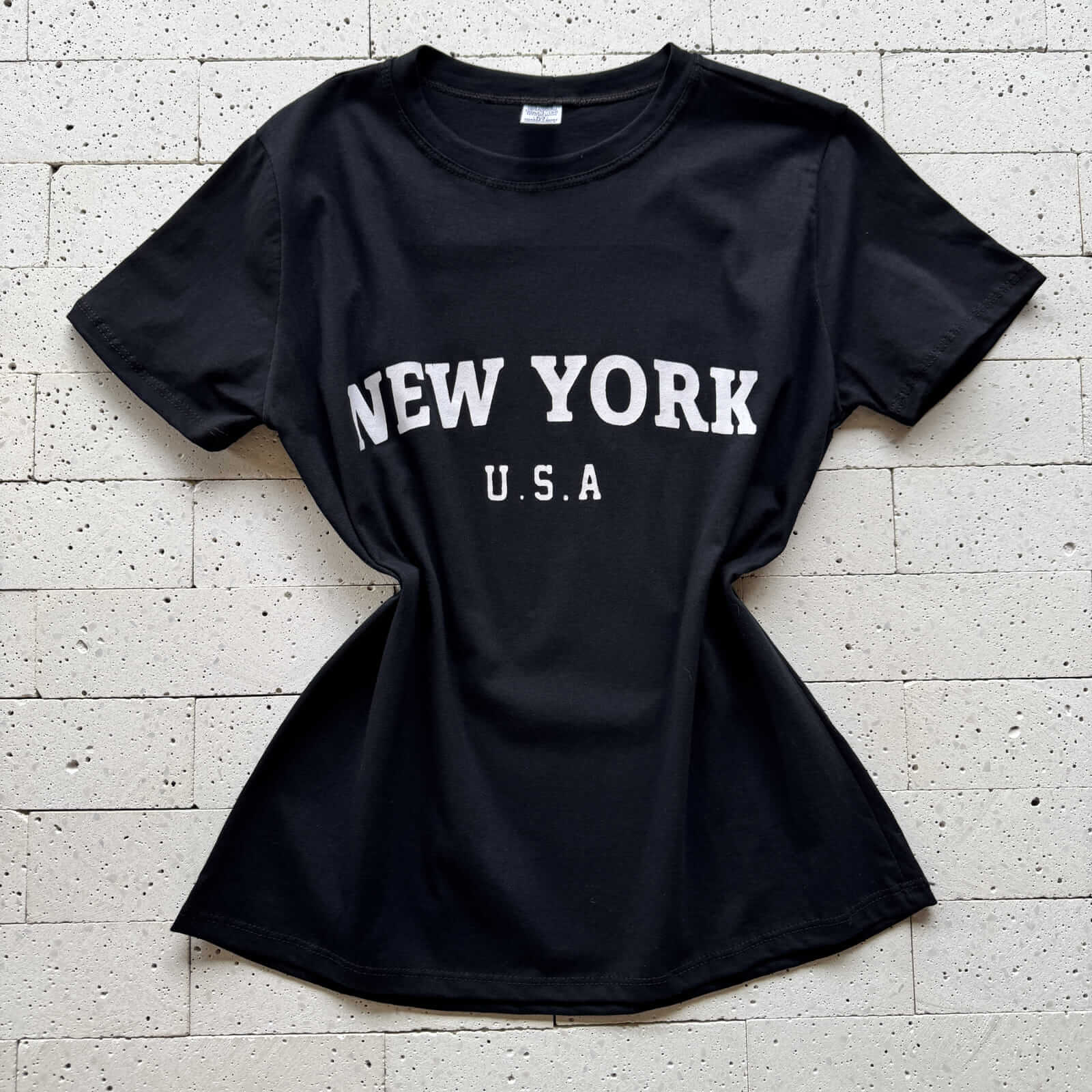 T-SHIRT ALGODÃO ESTAMPA NEW YORK U.S.A PRETO