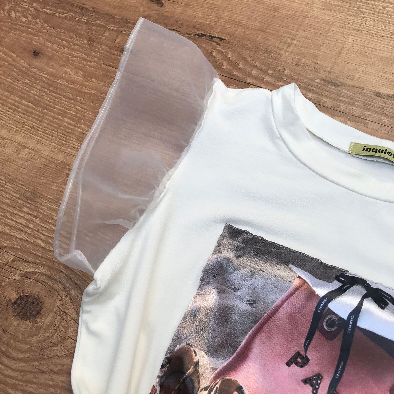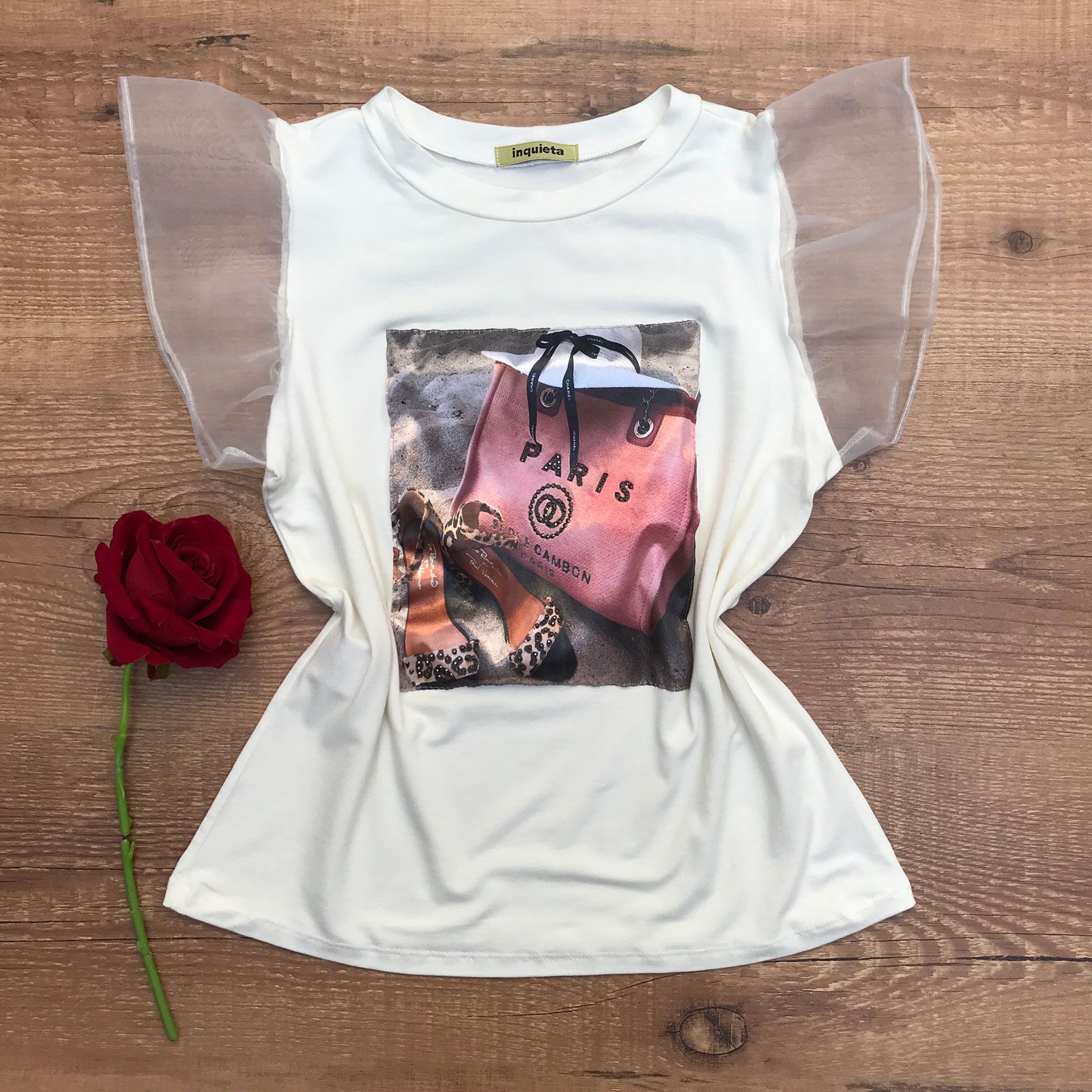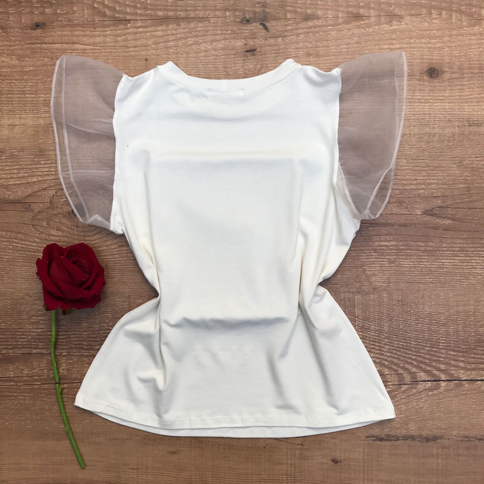 T-SHIRT BORDADA MANGA ORGANZA OFF