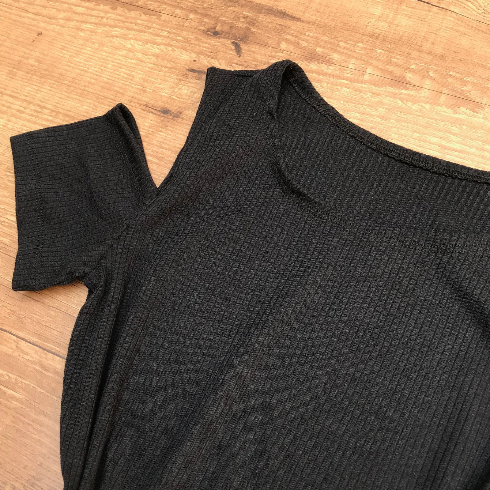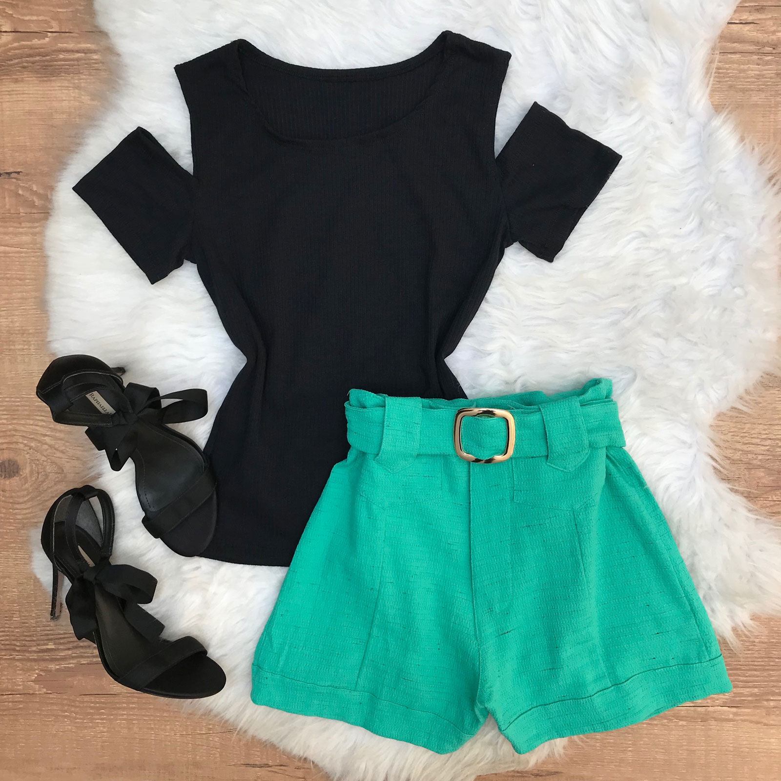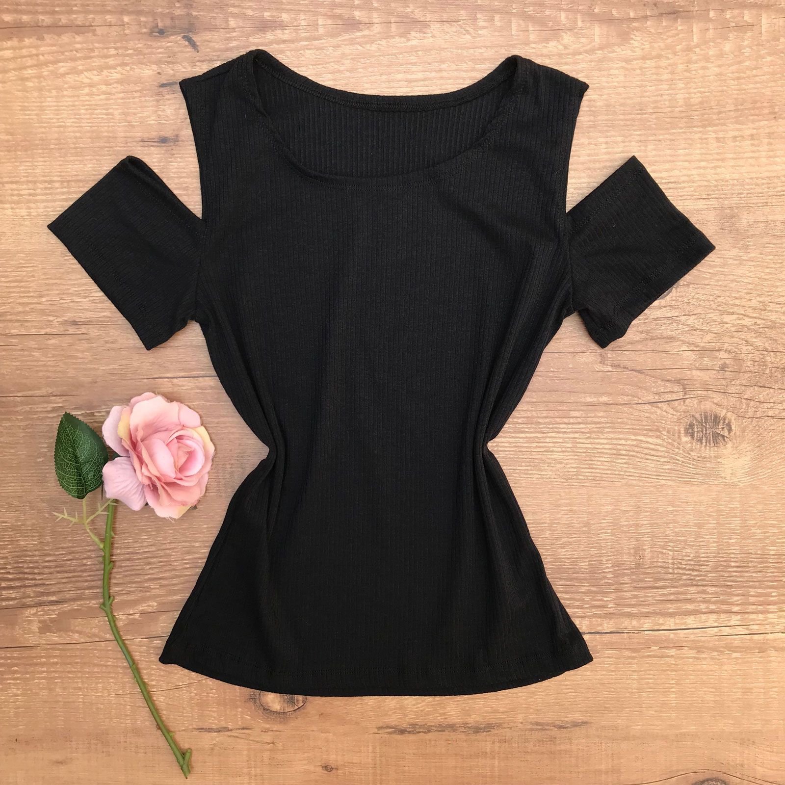 T-SHIRT CANELADA OMBRO ABERTO PRETA