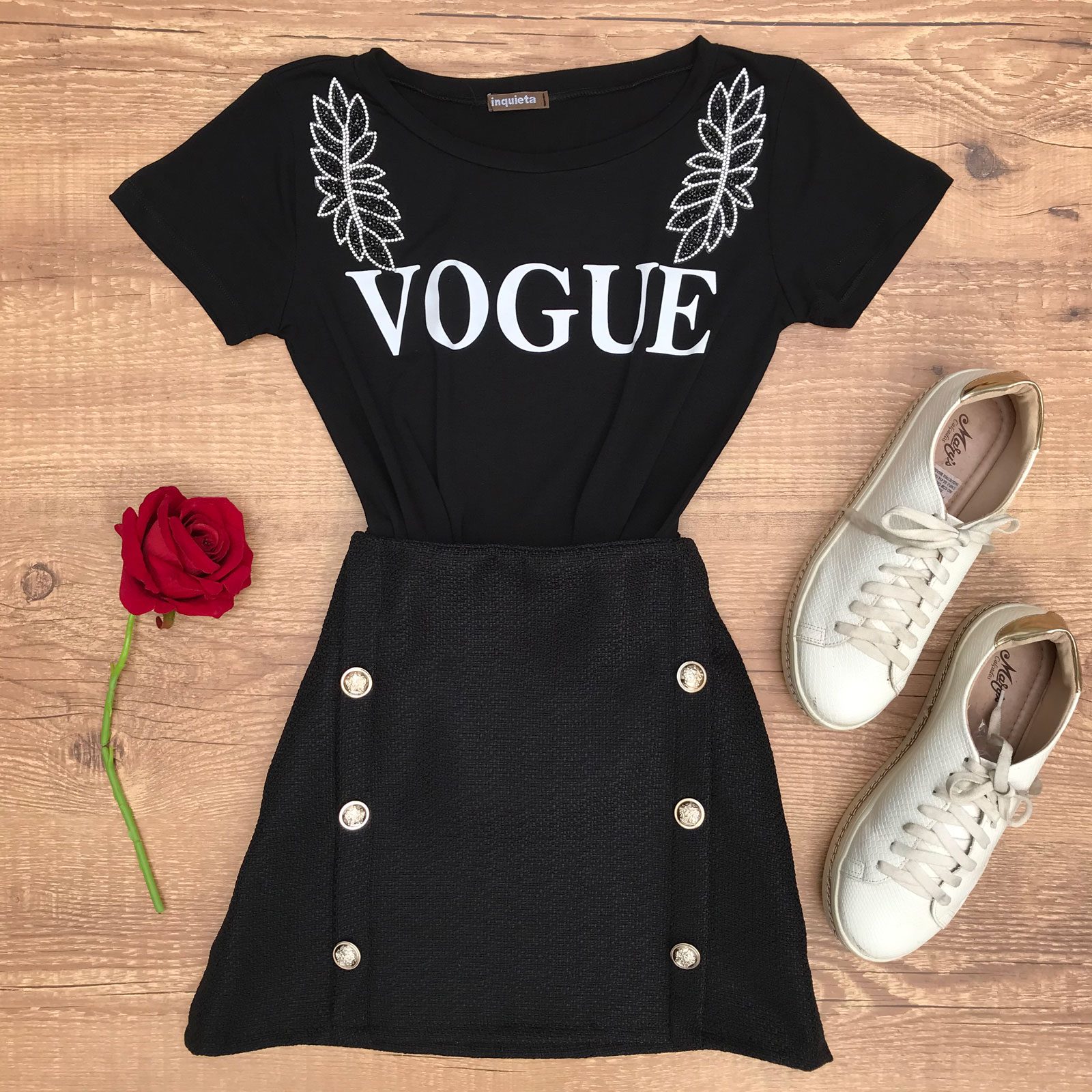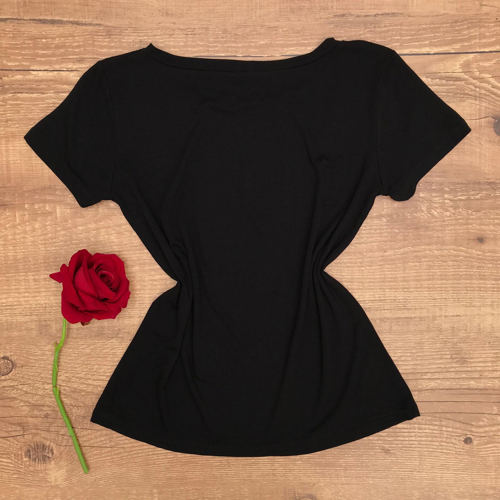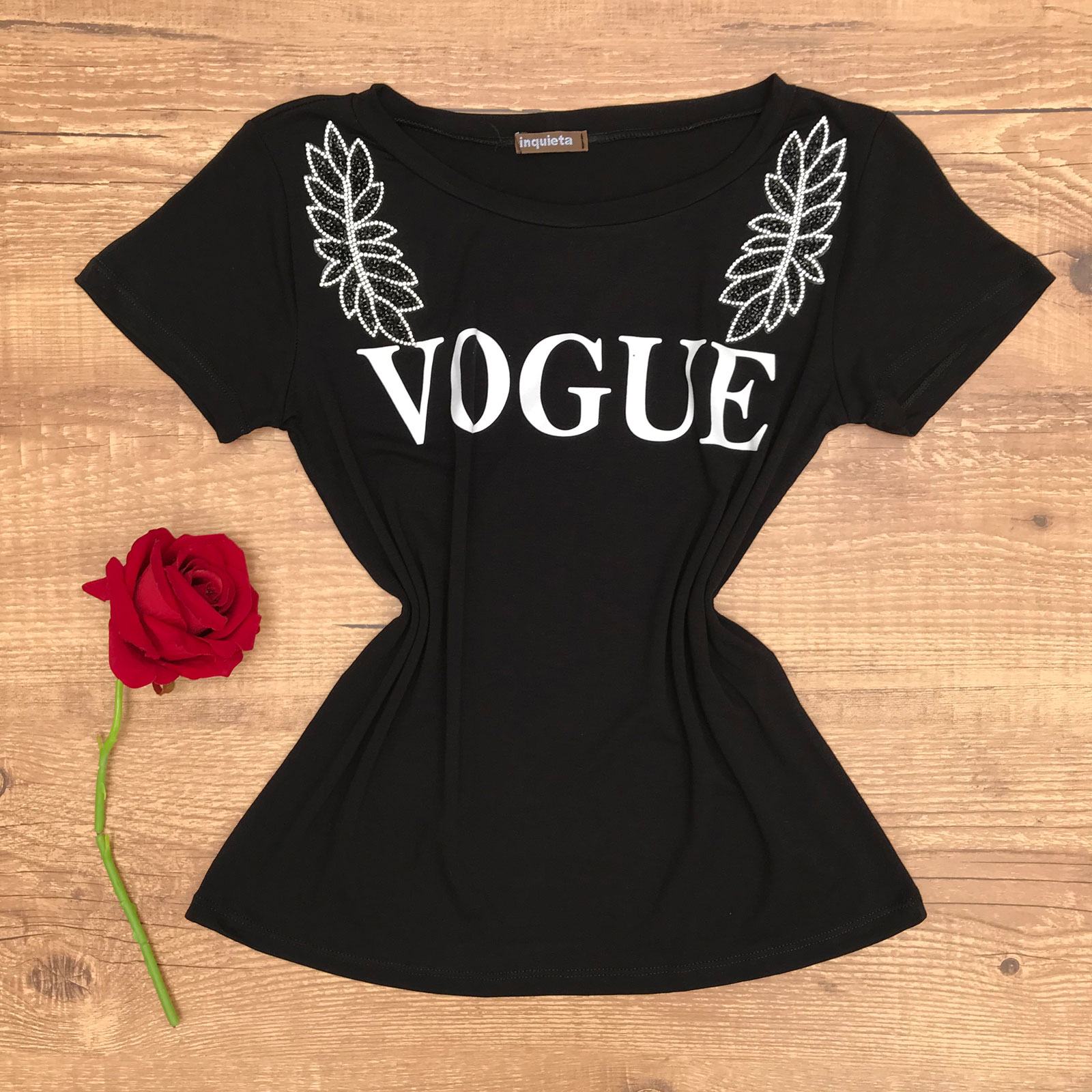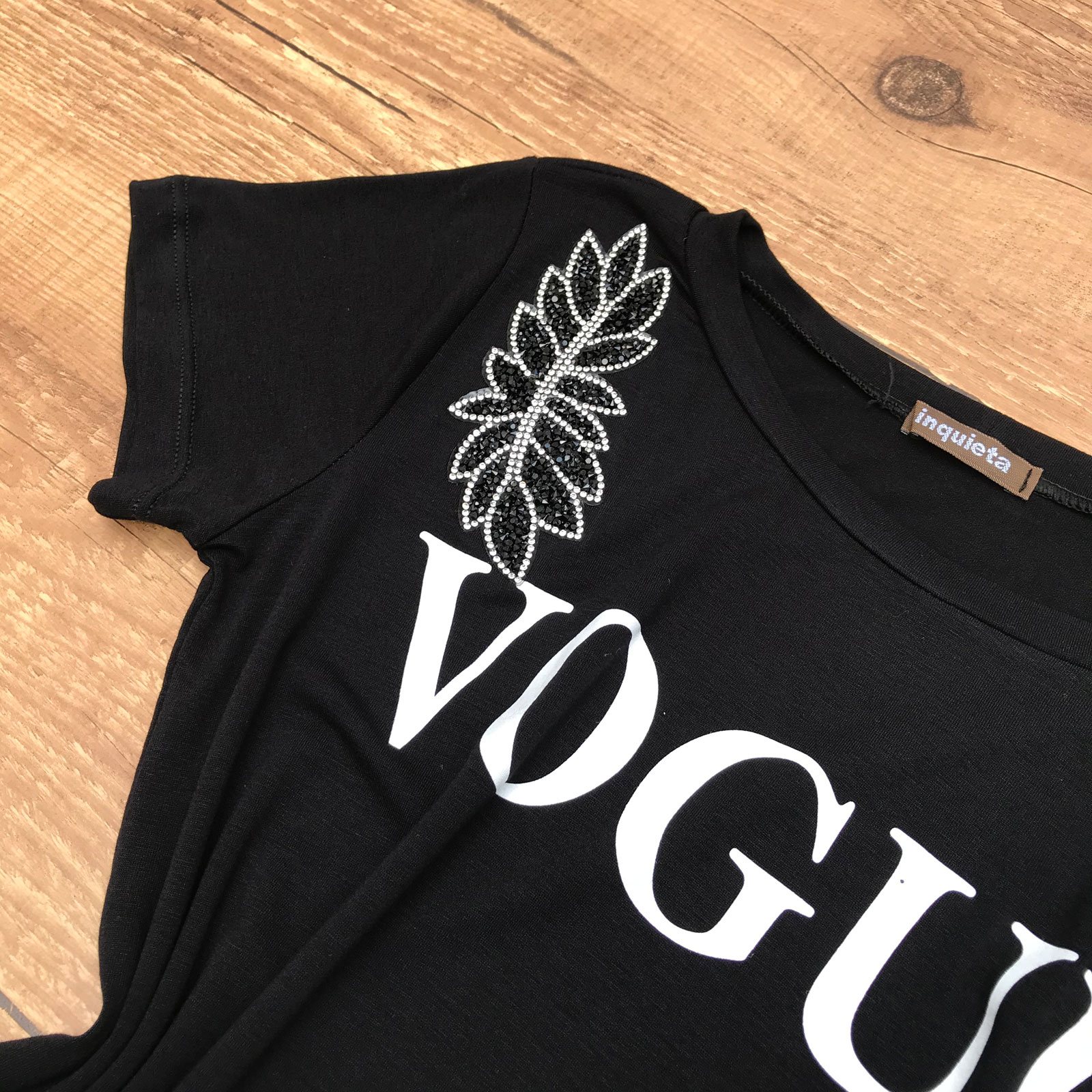 T-SHIRT COM APLICAÇÃO EM STRASS PRETA