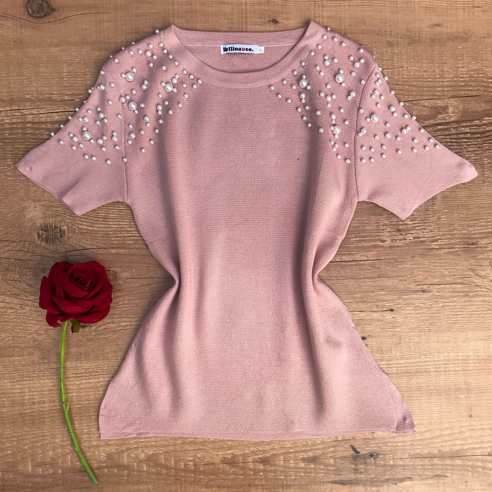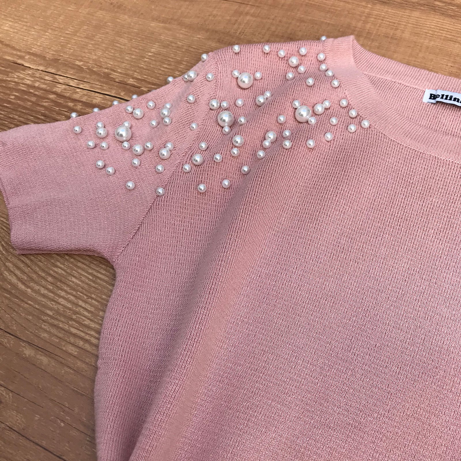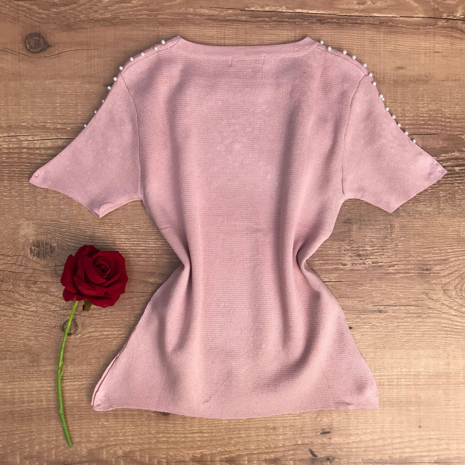 T-SHIRT COM PÉROLAS NO OMBRO ROSÊ