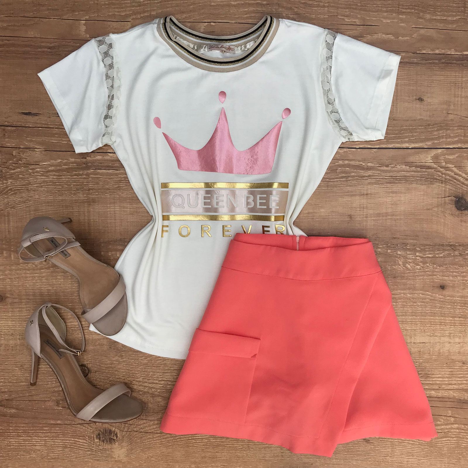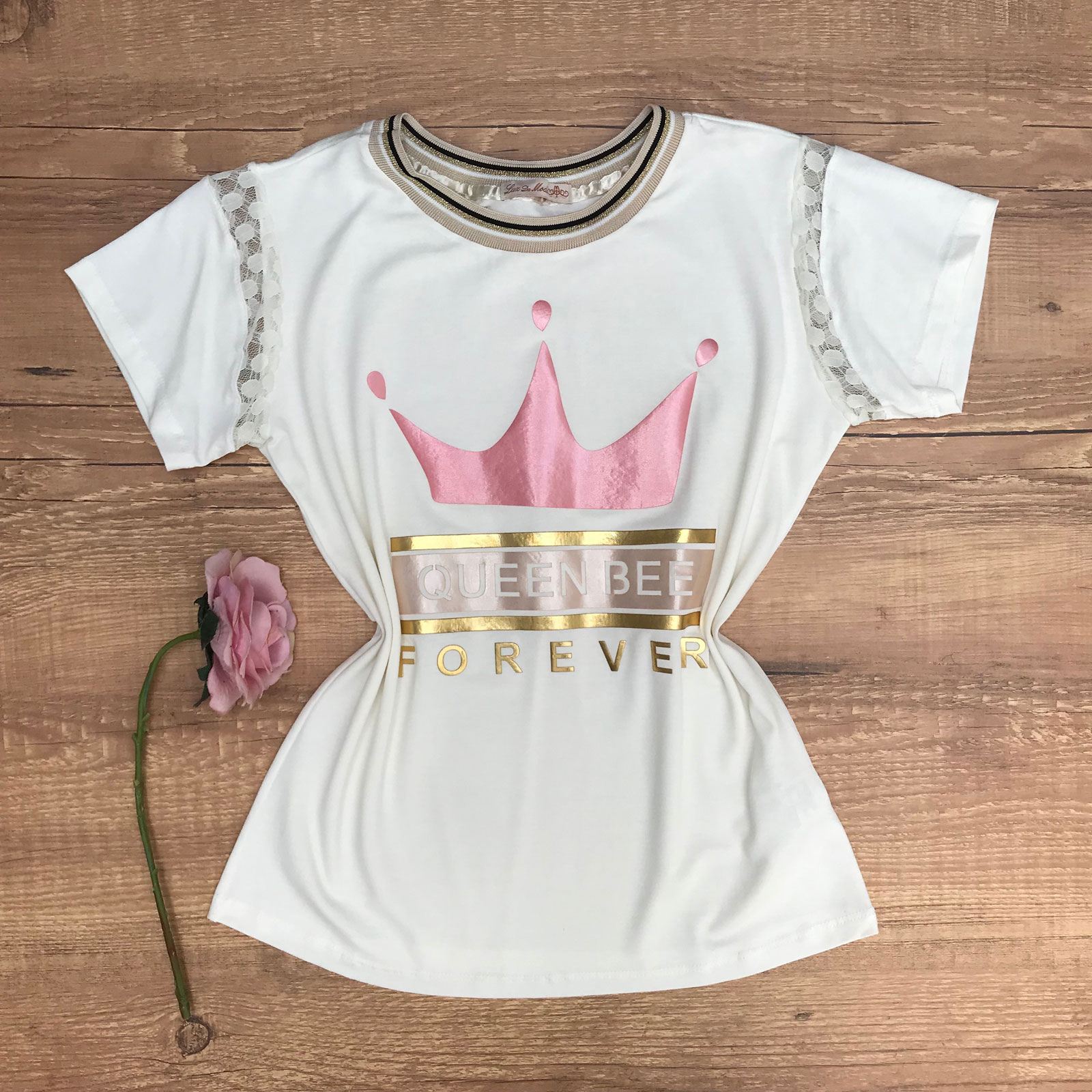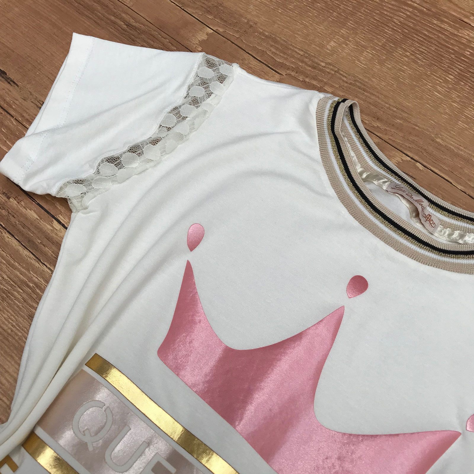T-SHIRT DETALHE RENDA COM GOLA LUREX OFF