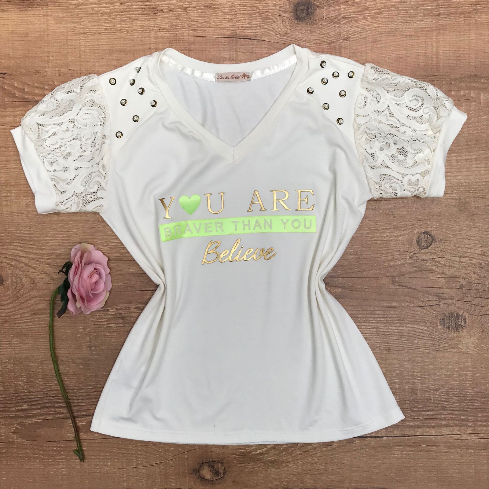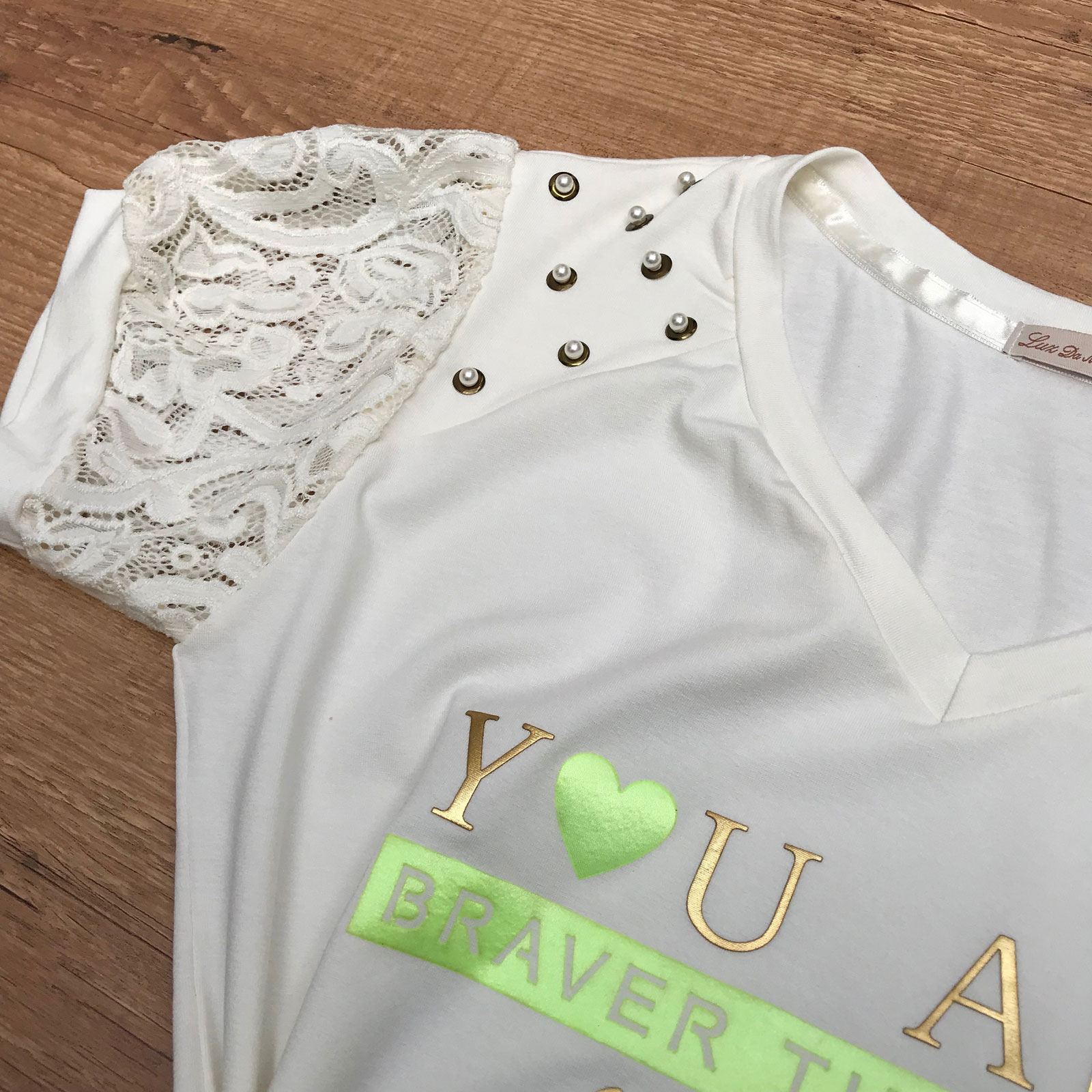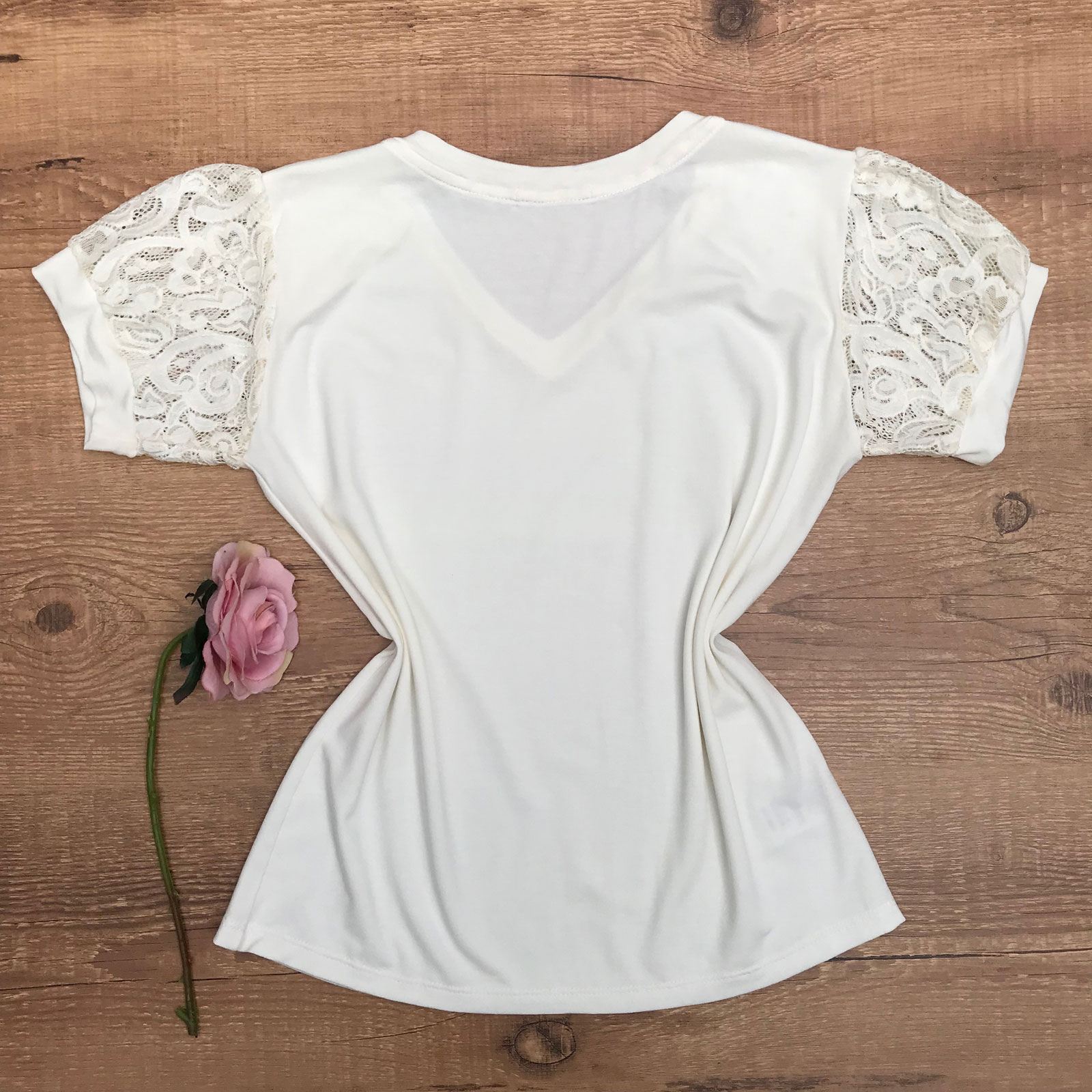 T-SHIRT MANGA GUIPIR DETALHE EM PÉROLAS
