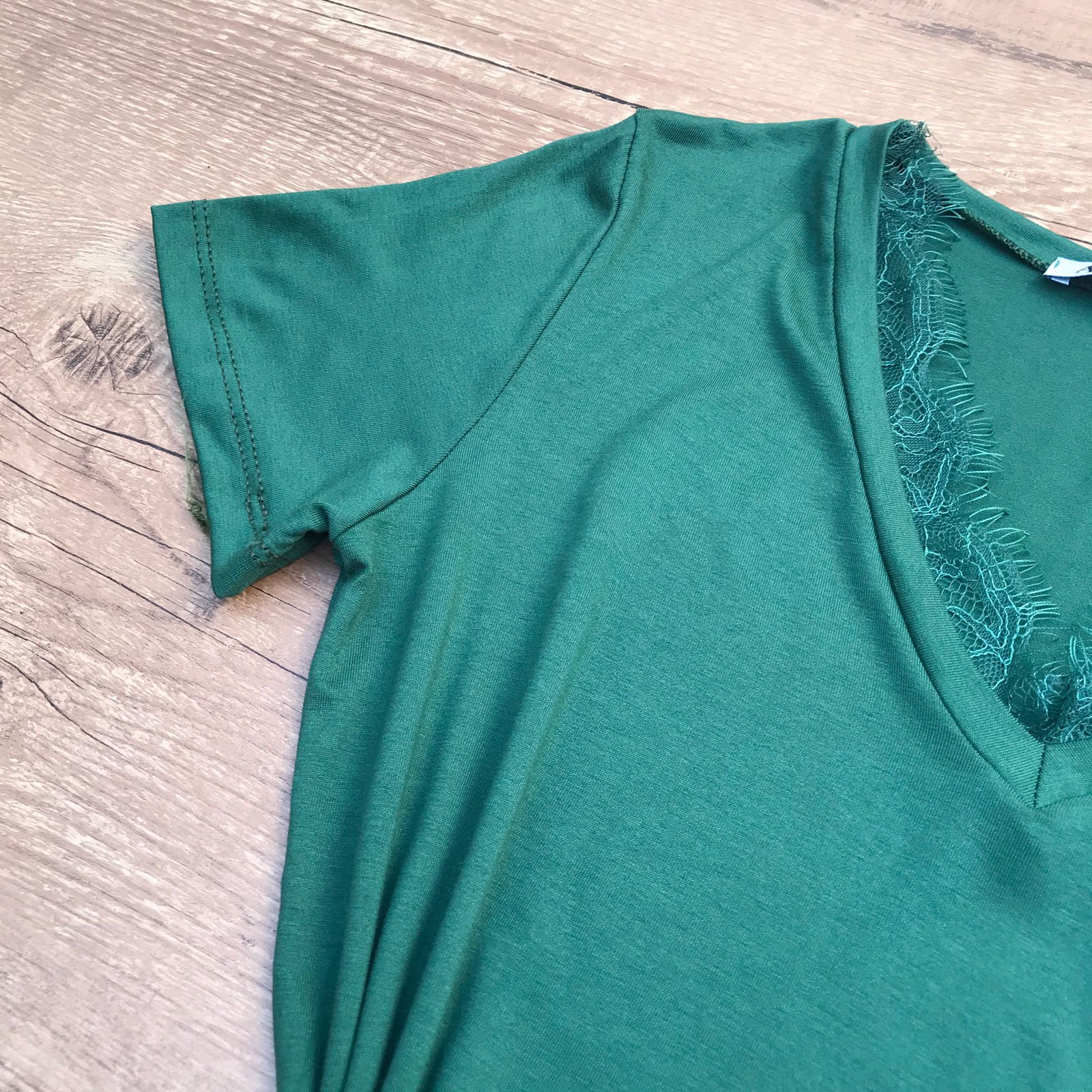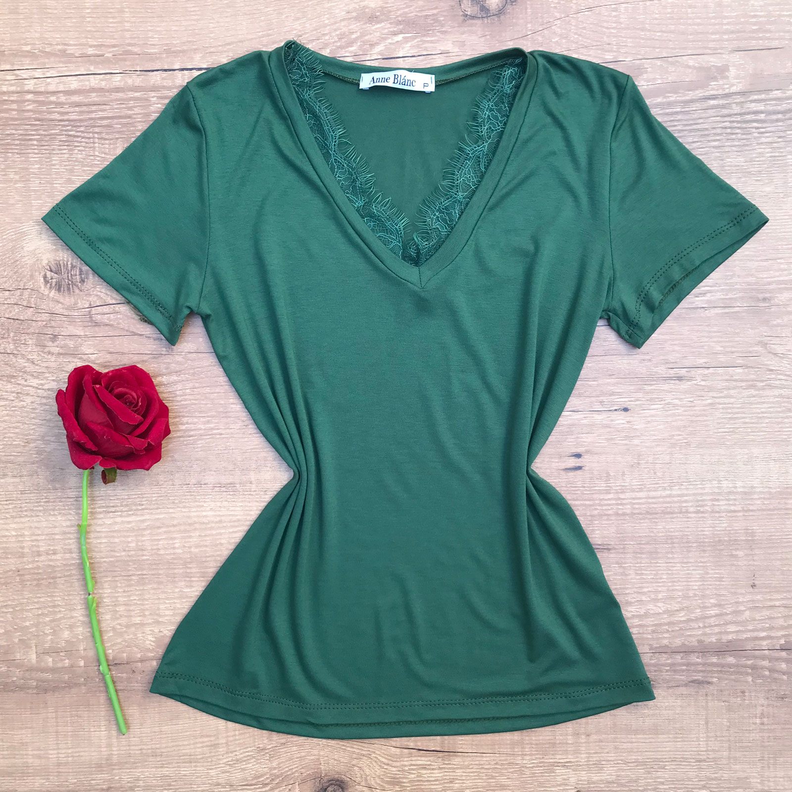 T-SHIRT PODRINHA DETALHE RENDA VERDE