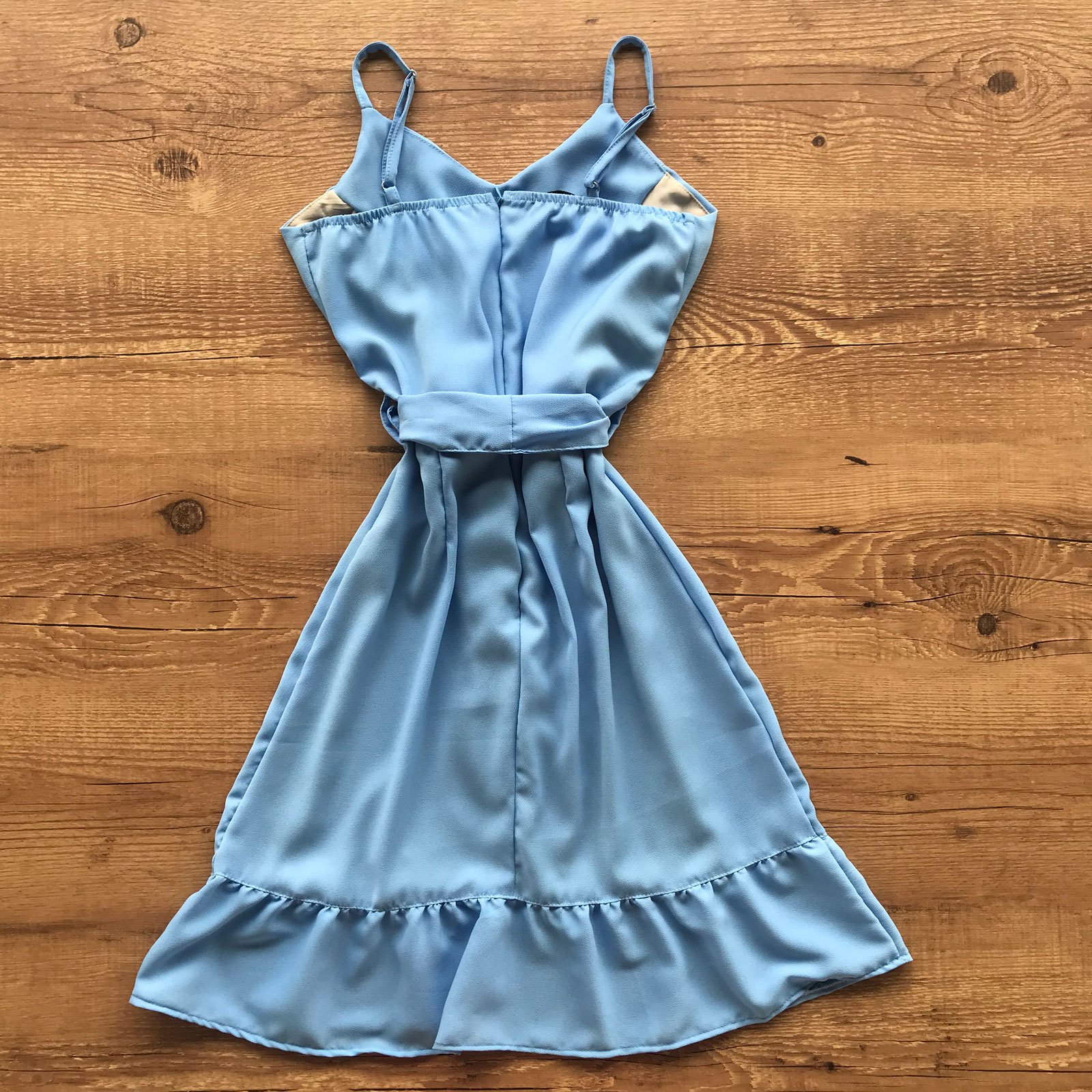 O Vestido Babados e Amarração Azul Bebê é charmoso, cheio de vida e vai turbinar seu verão. Tem um caimento impecável em razão do crepe de ótima qualidade no qual é fabricado. Possui abertura com fechamento em zíper e elástico na altura das costas. As alças são finas e ajustáveis e a peça não conta com bojo. A barra traz acabamento em babados e a peça. Possui passantes na cintura. Acompanha faixa para amarração.