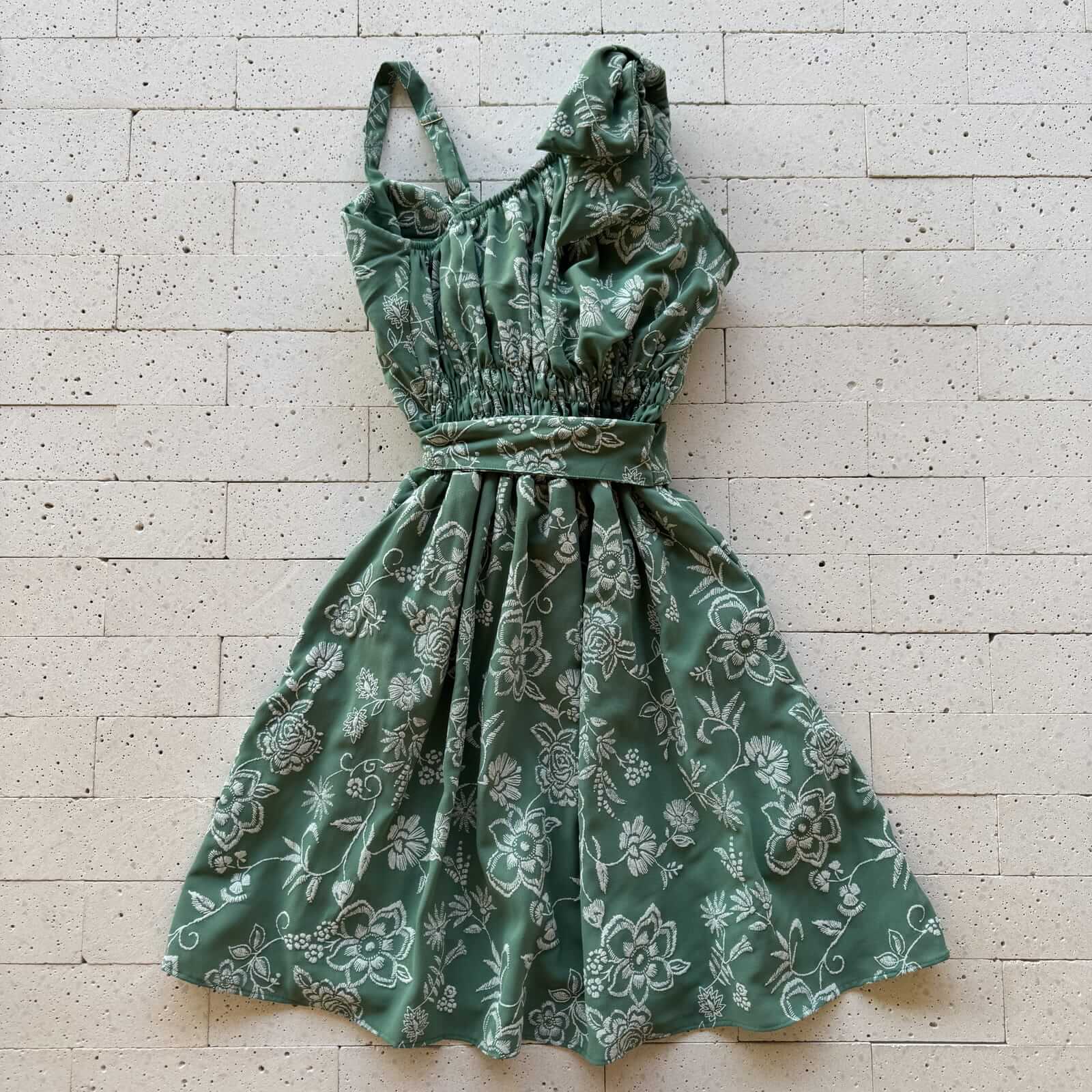 VESTIDO BORDADO LAÇO NO OMBRO E AMARRAÇÃO FIXA VERDE 2.0