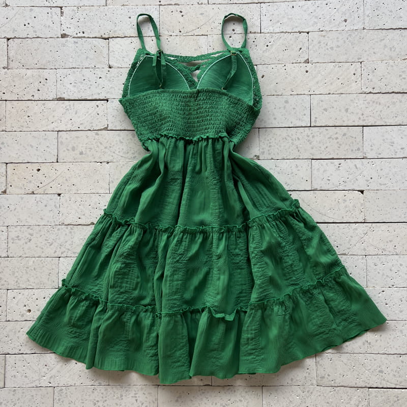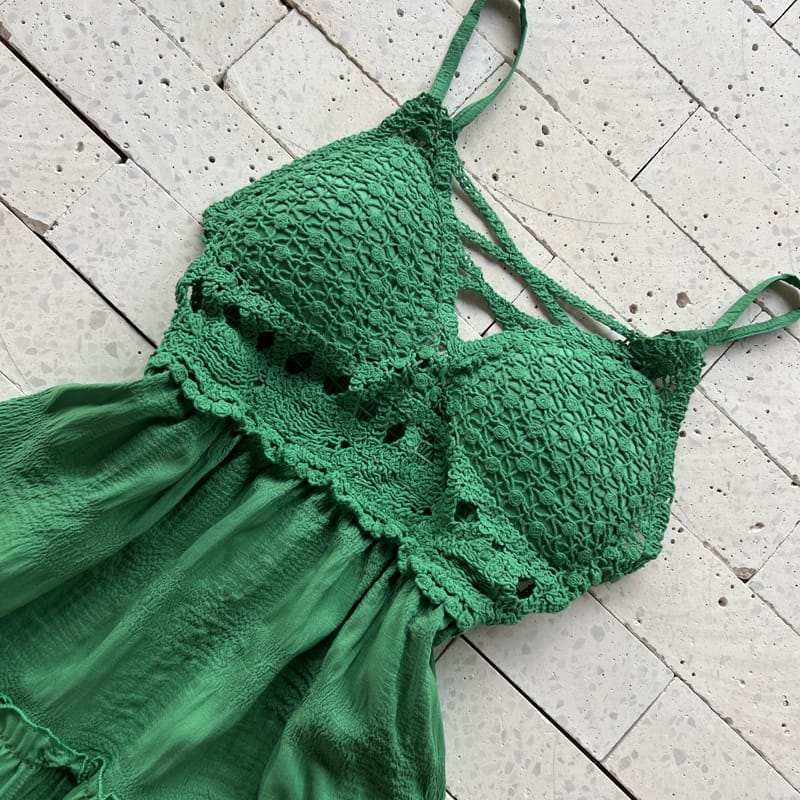 VESTIDO CAMADAS COM DECOTE DETALHADO CROCHÊ VERDE