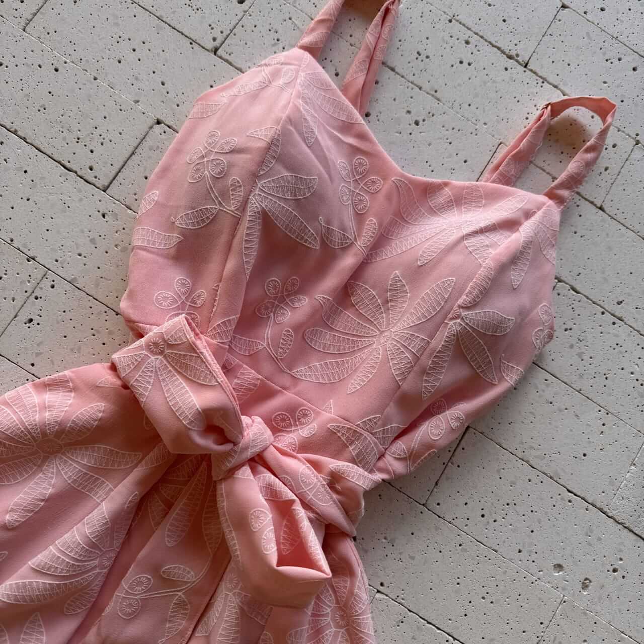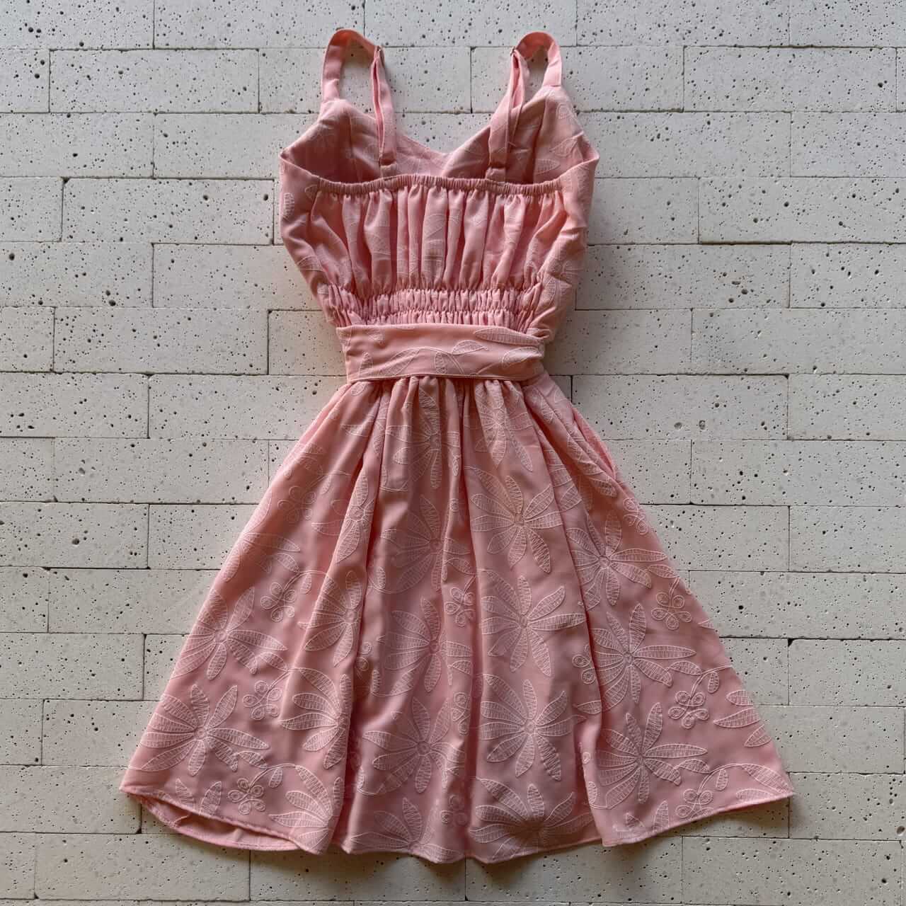 Vestido Crepe Bordado Alcinha e Cinto Faixa Rosa – Delicadeza e Feminilidade