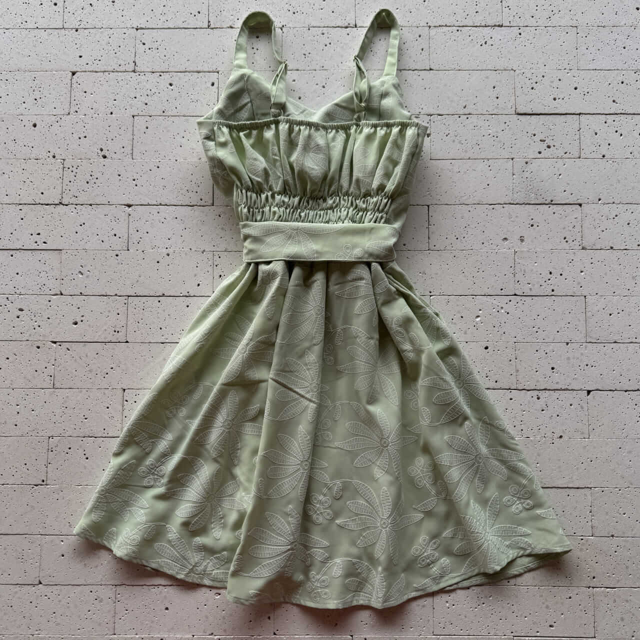 Como Usar o Vestido Crepe Bordado Alcinha e Cinto Faixa Verde Claro