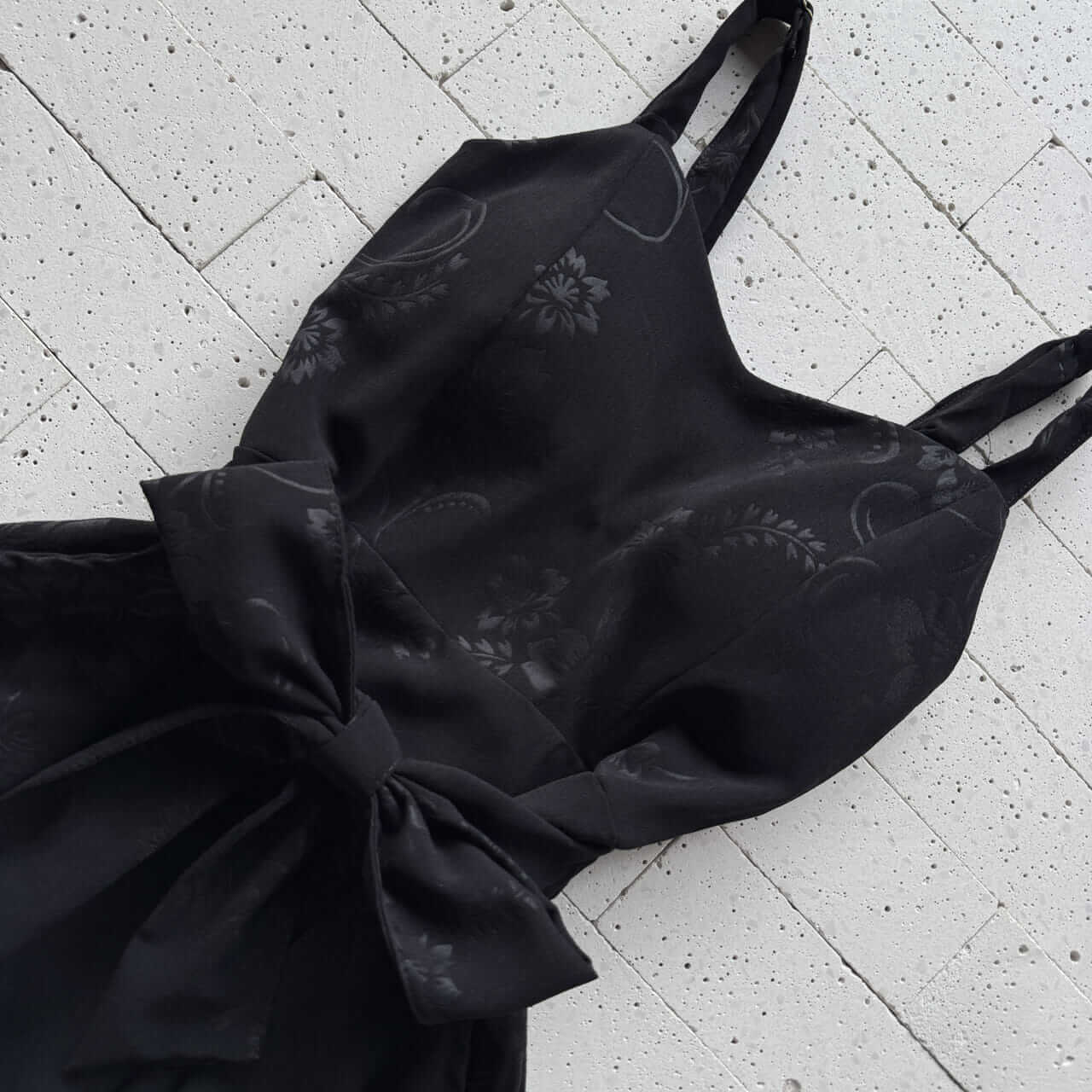 VESTIDO CREPE DETALHADO ALCINHA E CINTO FAIXA PRETO – Clássico, sofisticado e atemporal