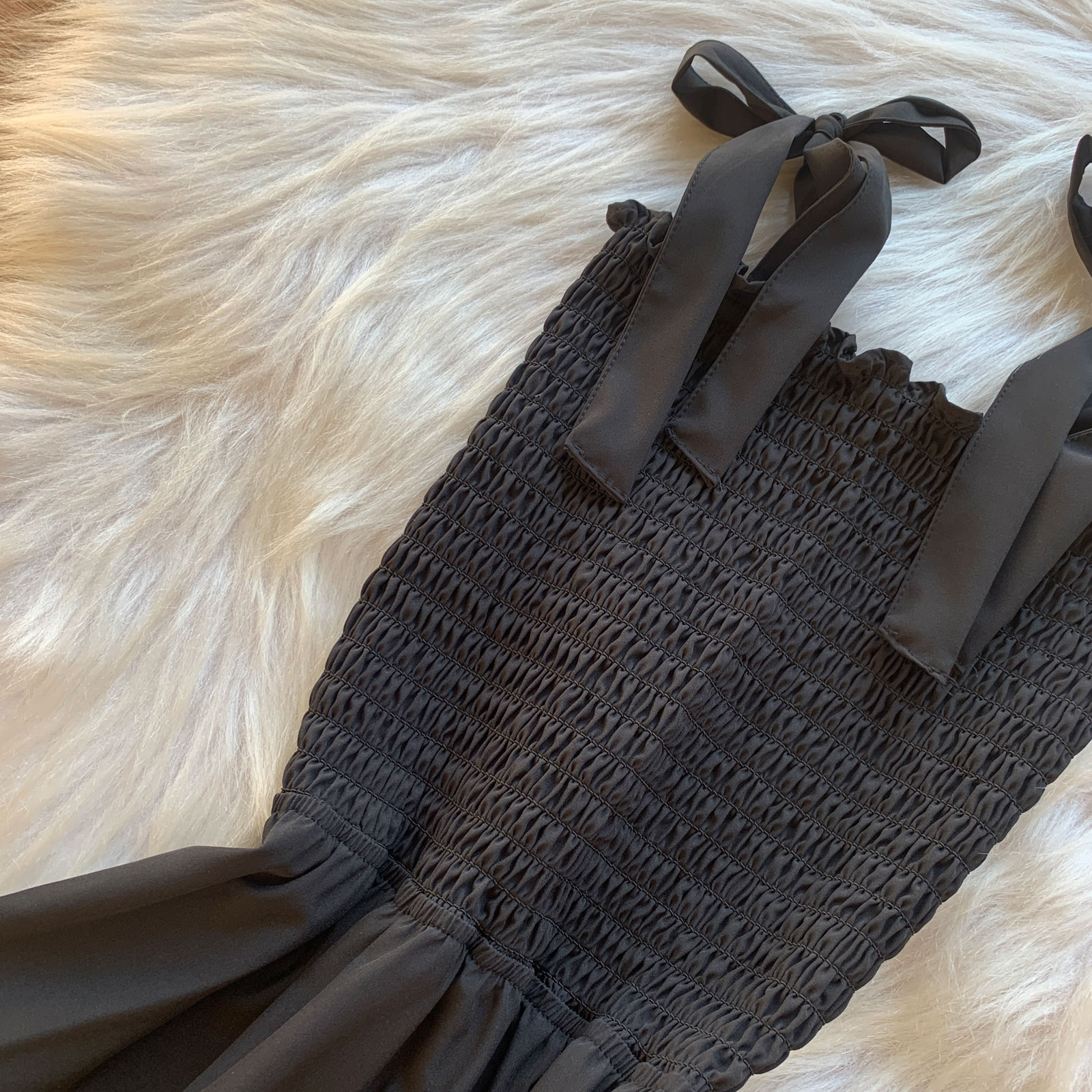 O Vestido Curto Busto Lastex e Barra Com Gripier Preto aparentemente confere um visual mais afeminado e super moderno! A peça confeccionada em crepe possui toque macio, caimento leve e oferece ao vestido uma maleabilidade e fluidez. A modelagem concentra um ajuste e alinhamento da parte de cima enquanto embaixo todo solto e cheio de movimenta. A flexibilidade do drapeado em lastex facilita o vestir e interfere positivamente no posicionamento na silhueta. As alças em faixas para amarração criam uma maior delicadeza e sustentação. Gripier na barra intensifica o design, melhorando-o!