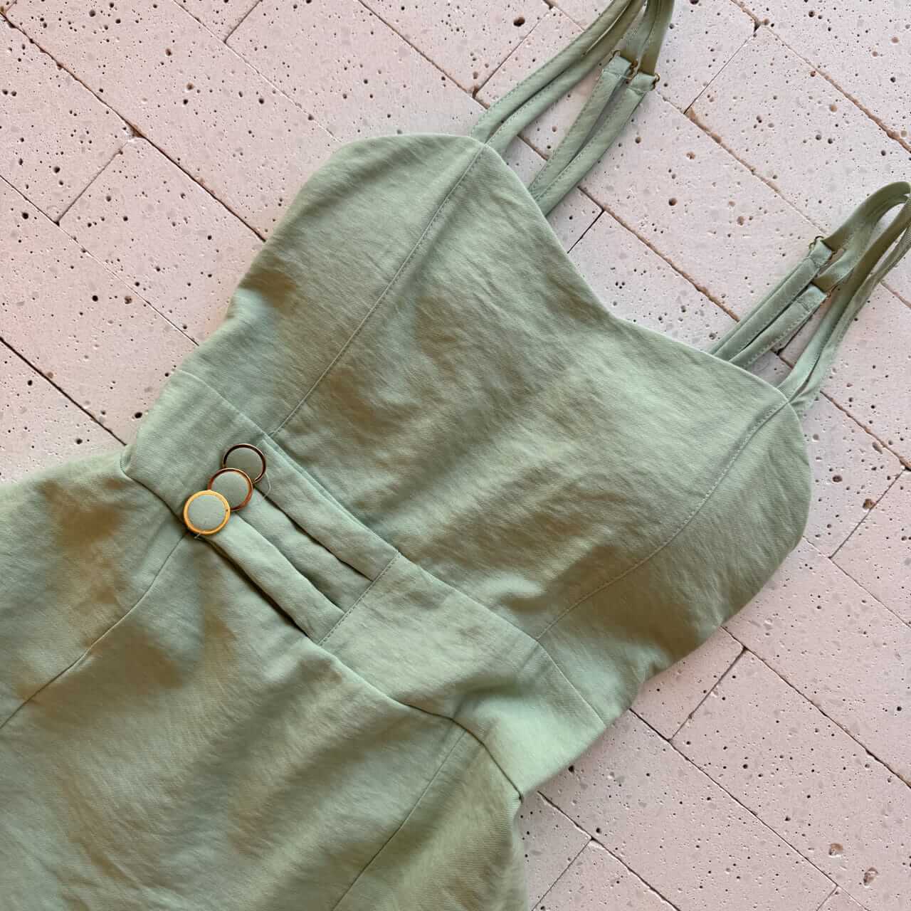 VESTIDO CURTO COM SHORT EMBUTIDO E BOTÕES NA CINTURA PISTACHE