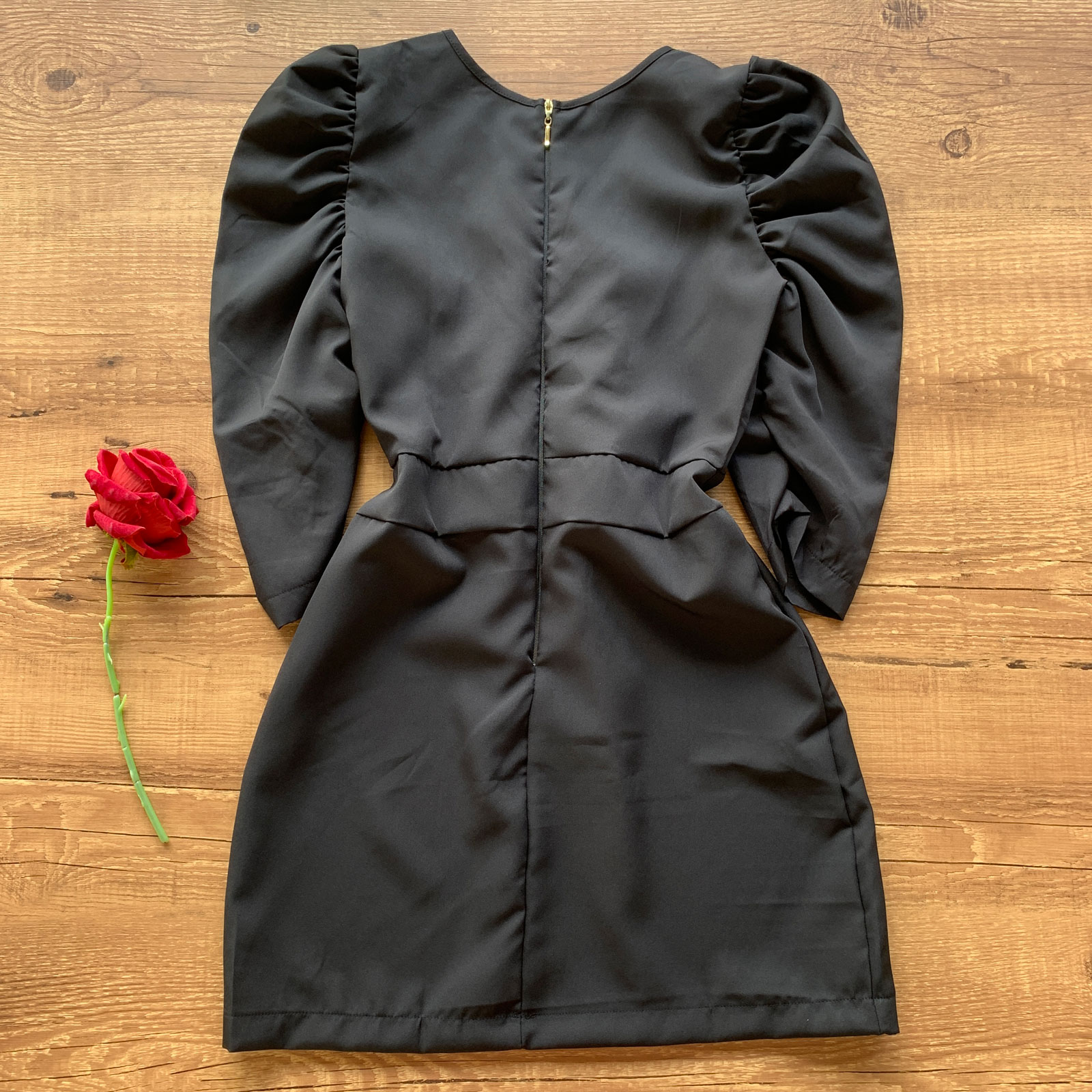 VESTIDO CURTO DECOTE V MANGA PRINCESA PRETO