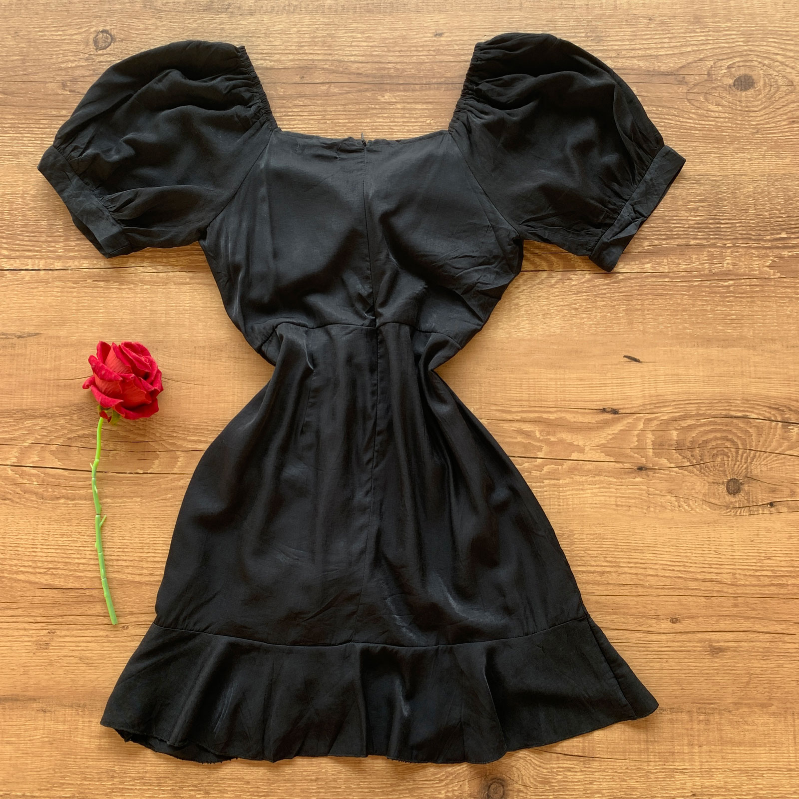 Escolha seu Vestido Curto Fenda Babados Preto com nosso PROVADOR VIRTUAL