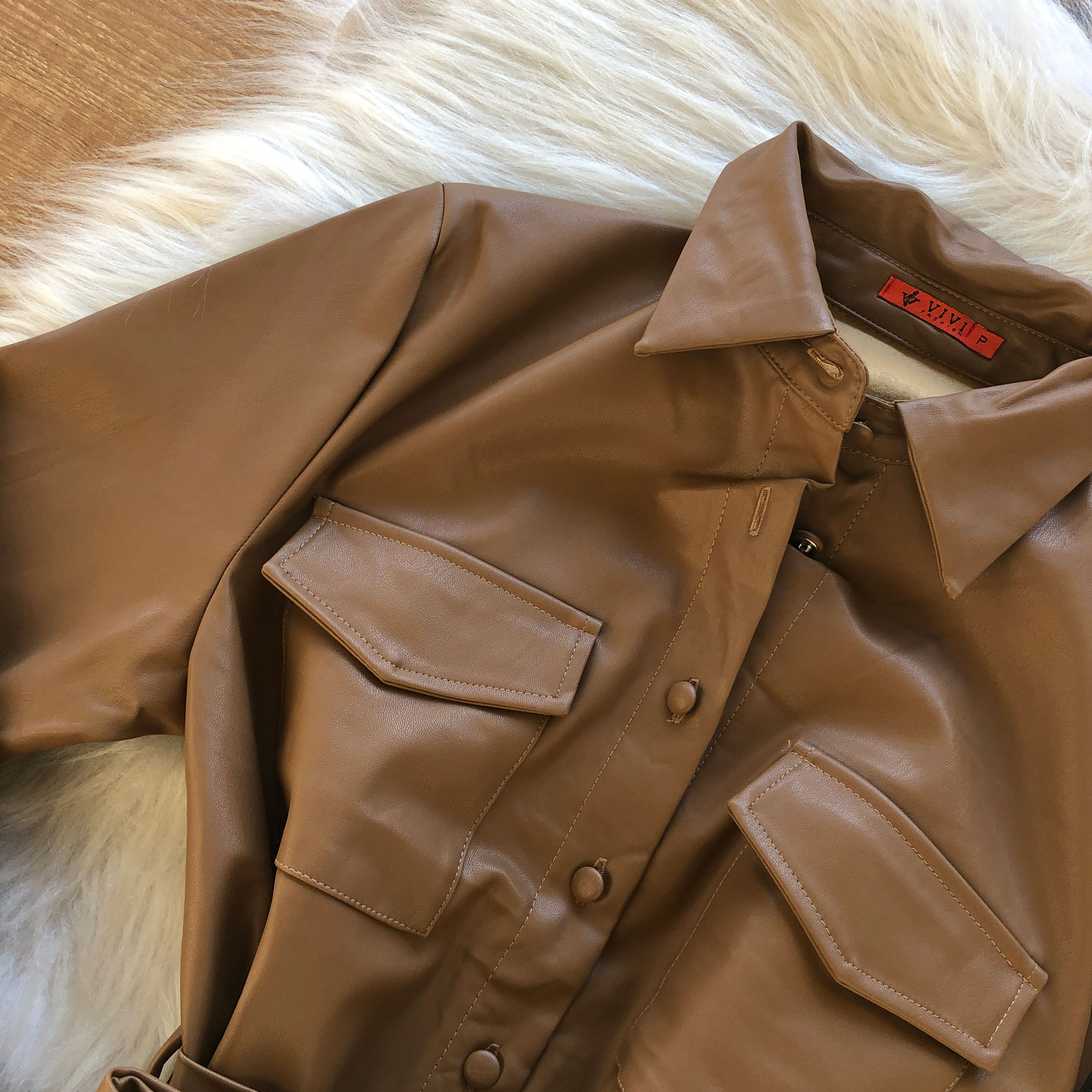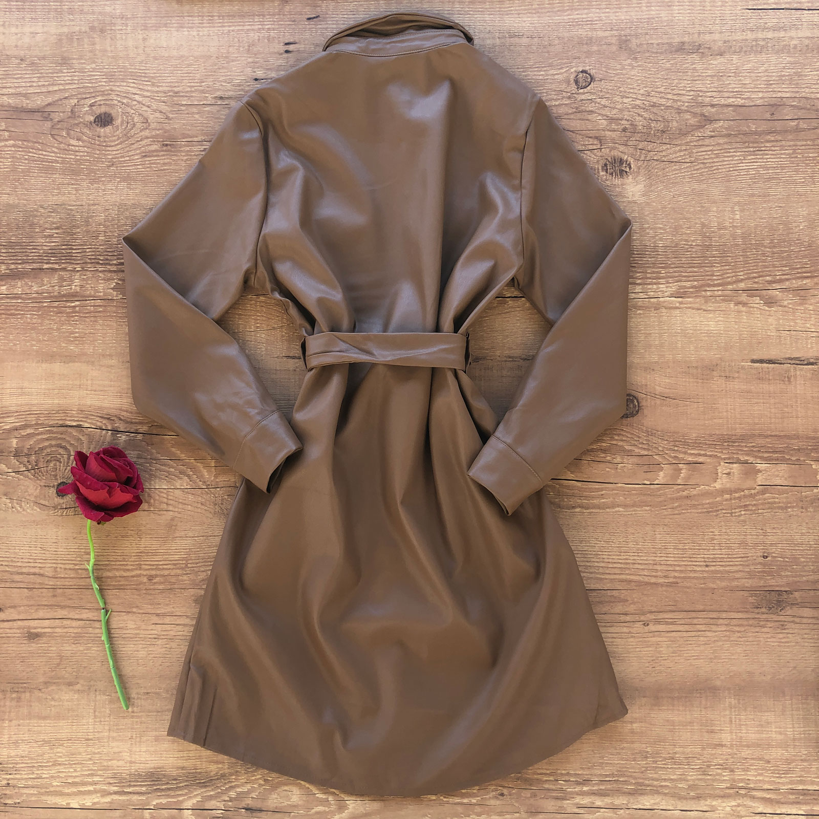 VESTIDO DE COURINHO MANGA LONGA CARAMELO
