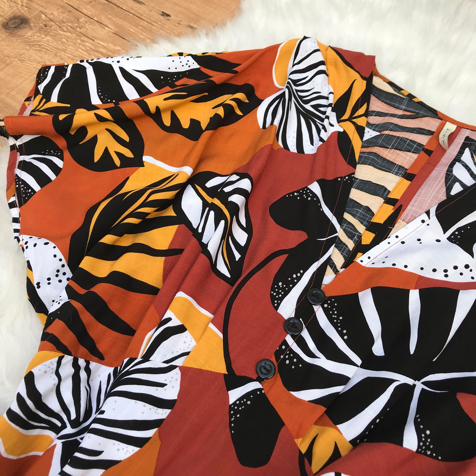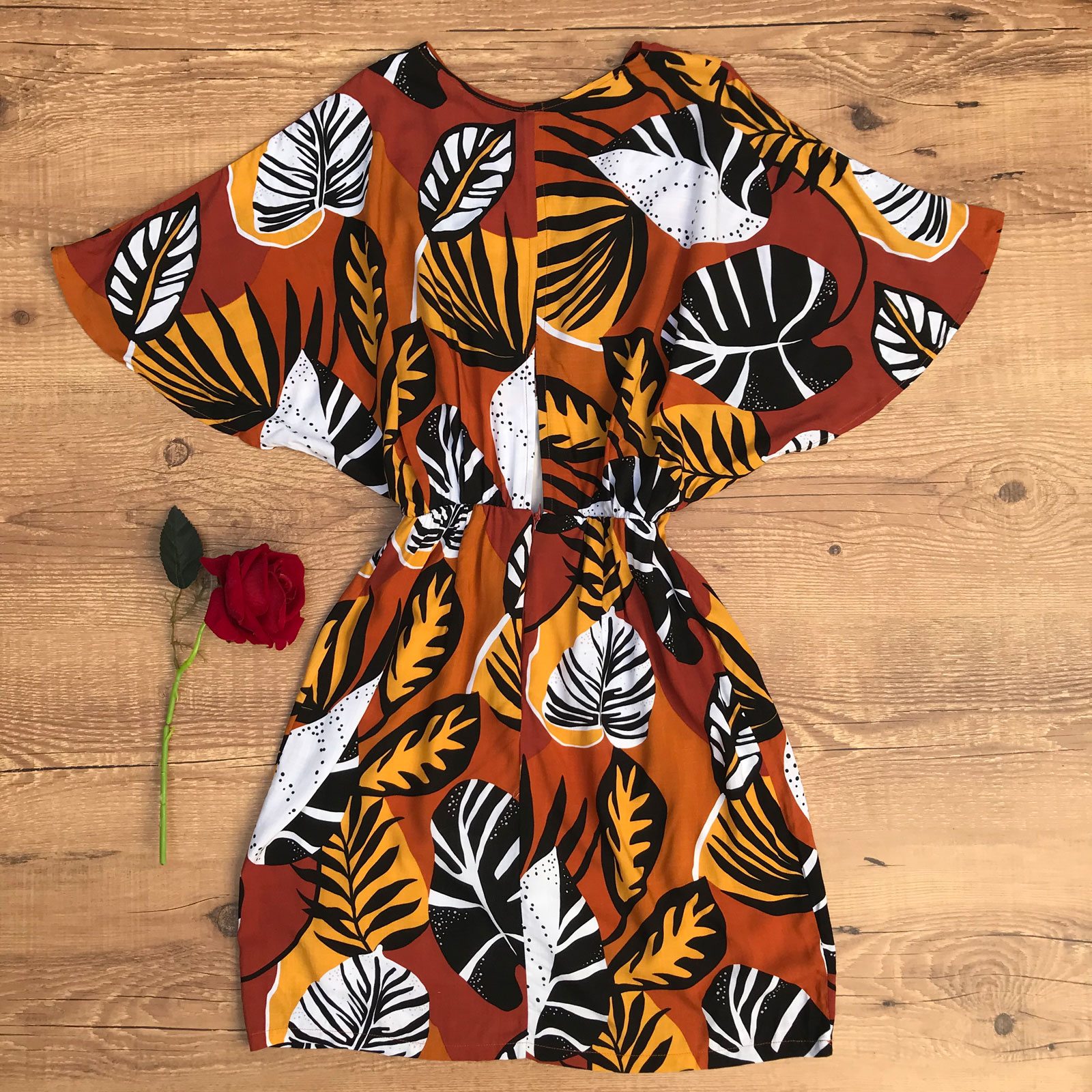 VESTIDO ESTAMPA FOLHAGEM TONS TERROSOS