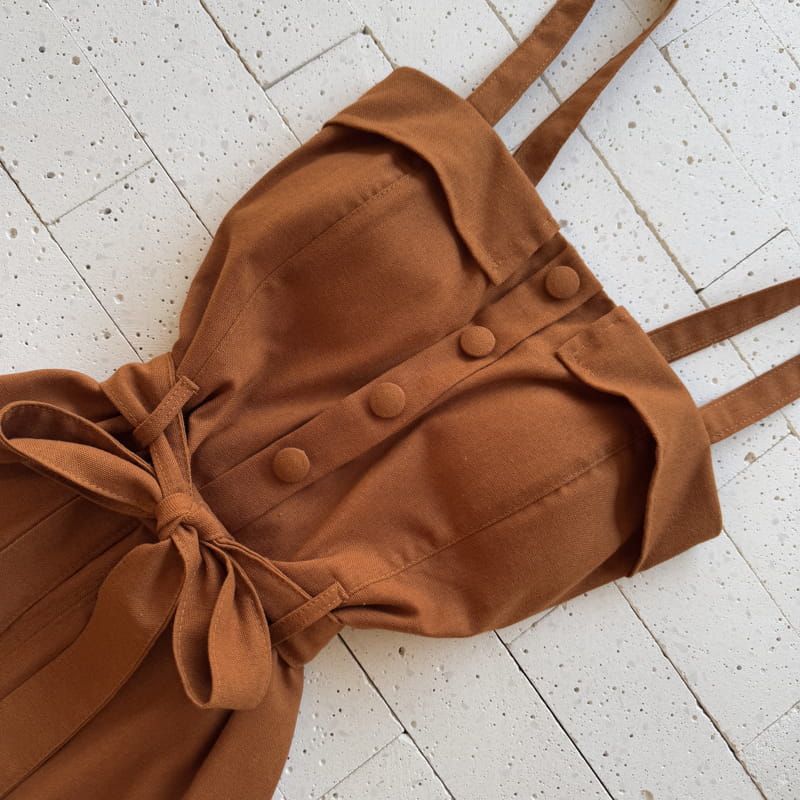 VESTIDO LINHO DETALHE BOTÕES TELHA – Charme e Sofisticação
