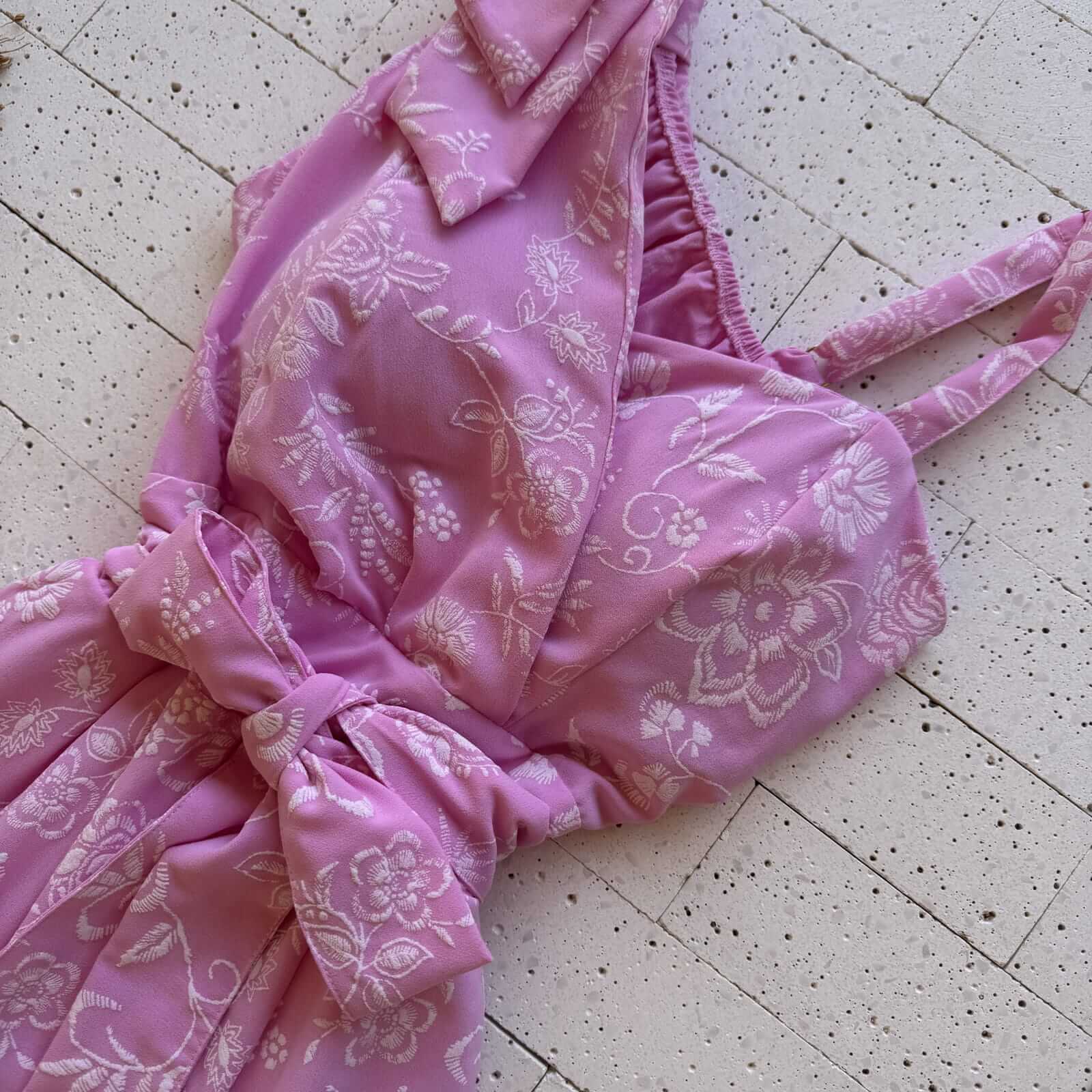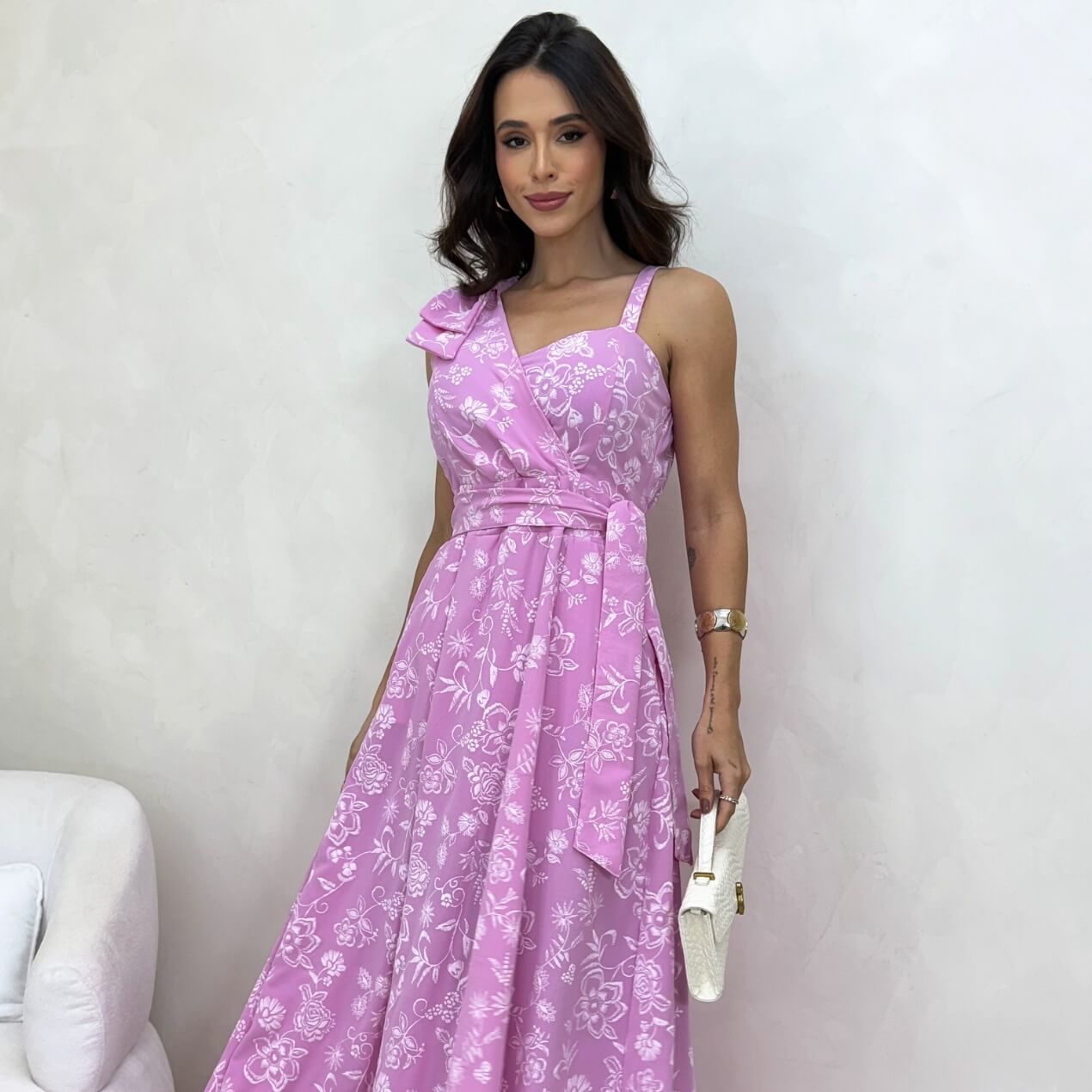 Garanta já o seu Vestido Longo Bordado Laço no Ombro e Amarração Fixa Rosa com Envio Rápido e até 12x sem juros!
