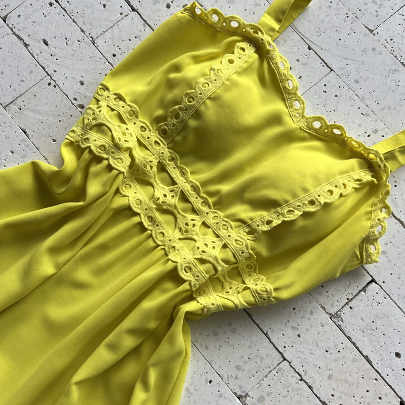 VESTIDO LONGO CAMADAS DETALHE EM GRIPIER AMARELO