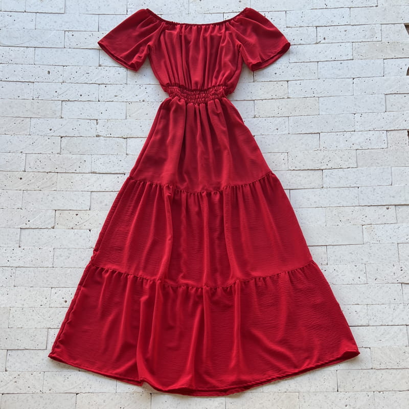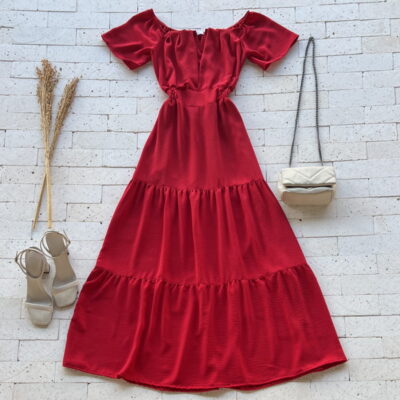 VESTIDO LONGO CIGANINHA AIR FLOW DETALHE V LUXO VERMELHO